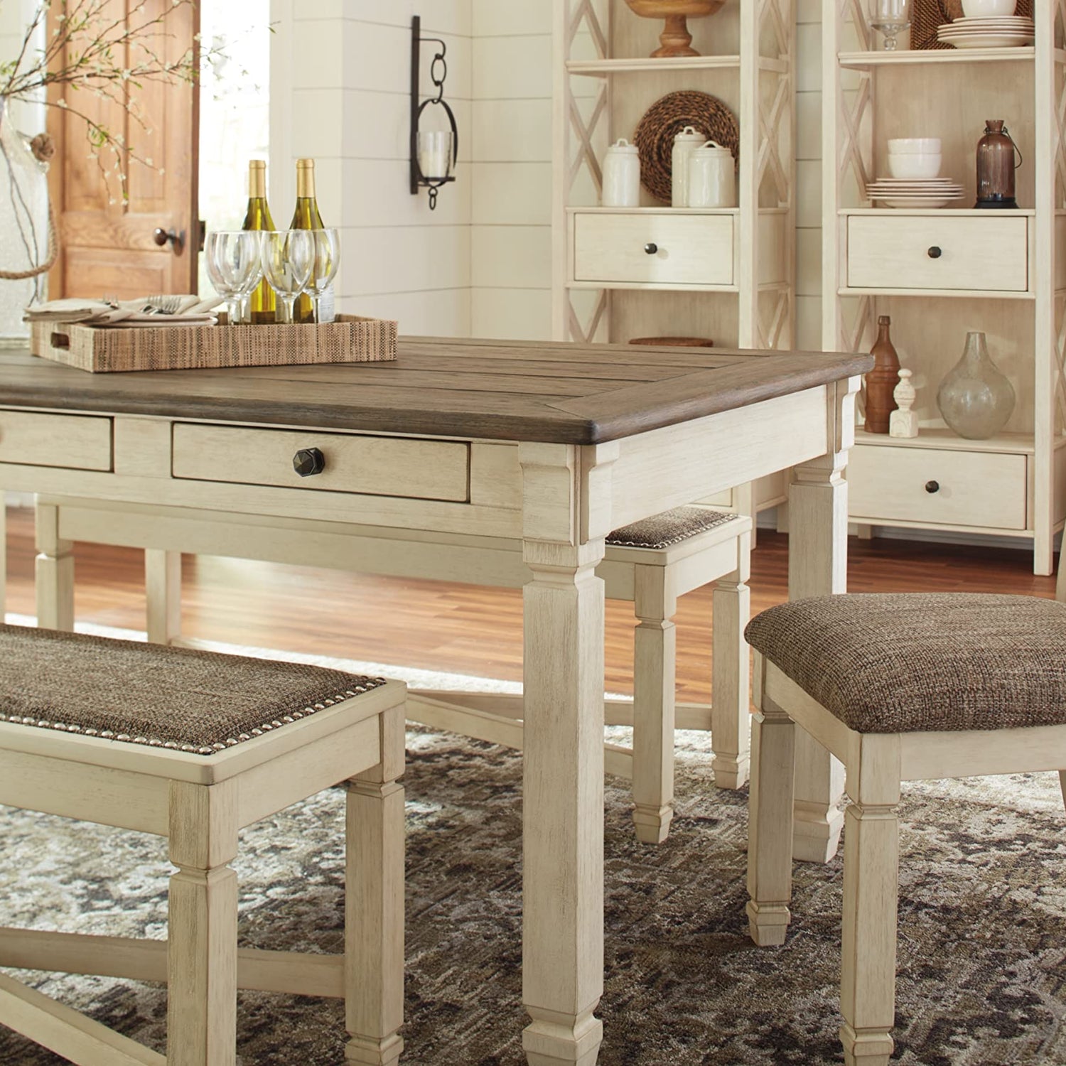 Signature Design by Ashley Bolanburg Farmhouse Dining Table with Drawers, Seats up to 6, Whitewash