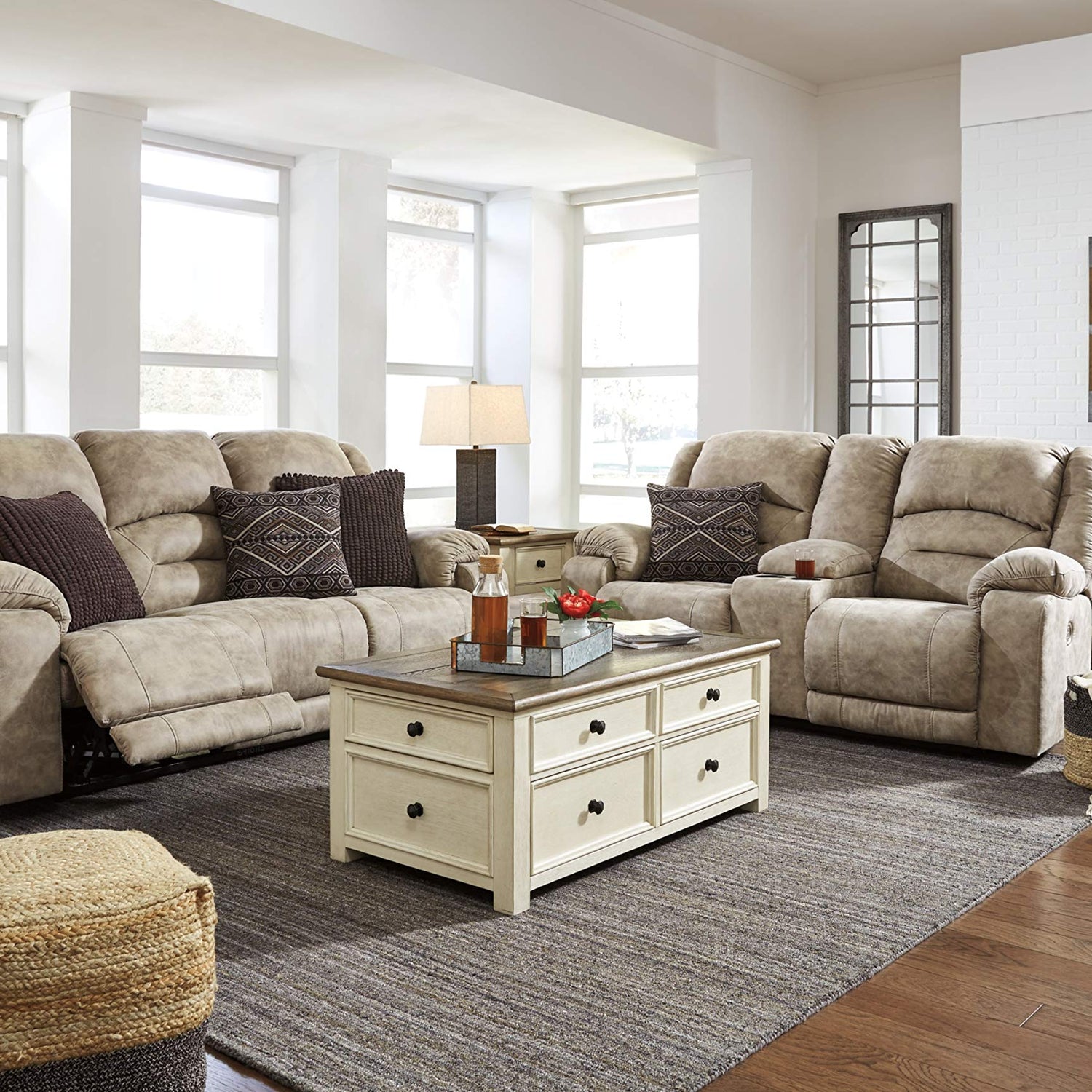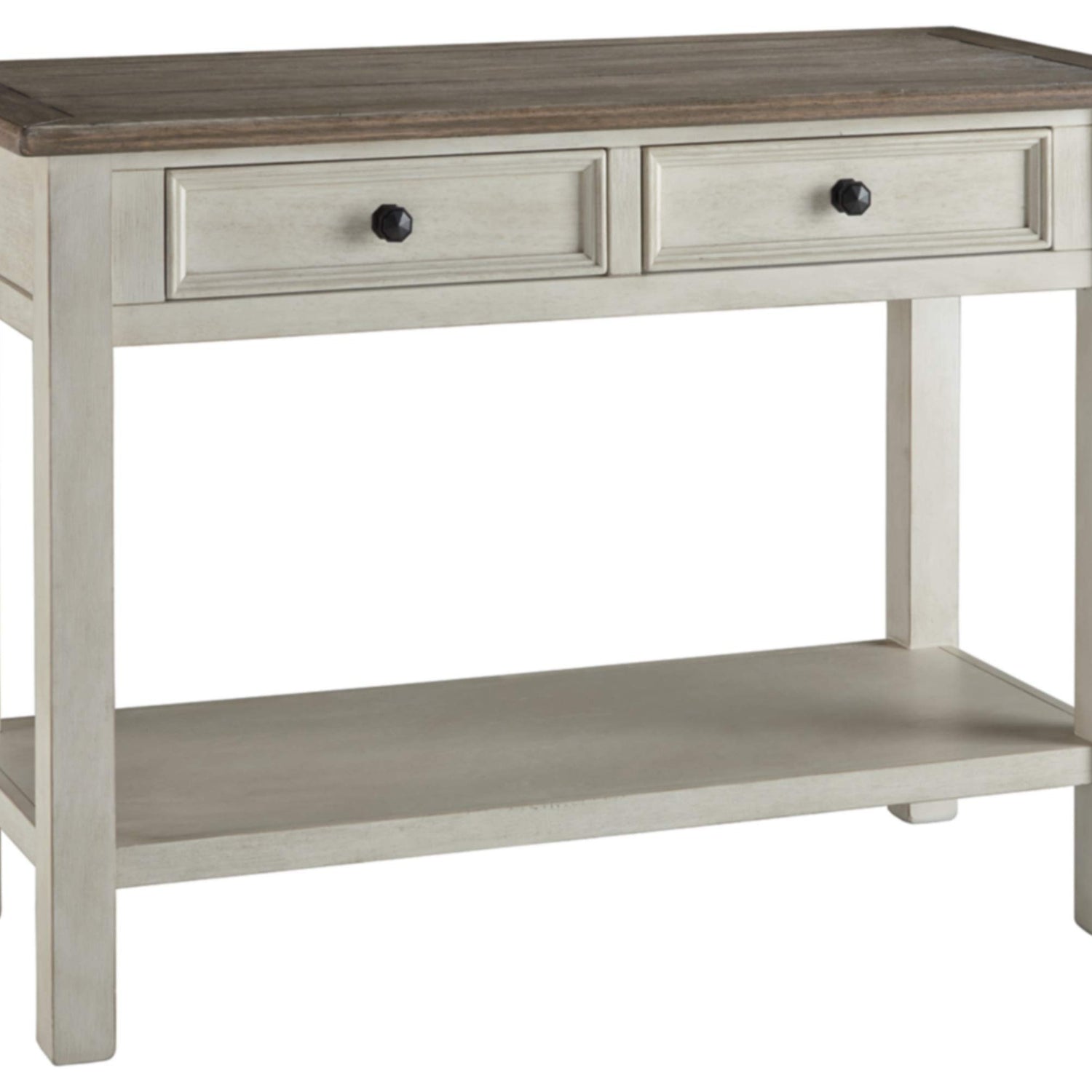 Signature Design by Ashley Bolanburg Farmhouse Rectangular Two Tone Sofa Table, Antique Cream