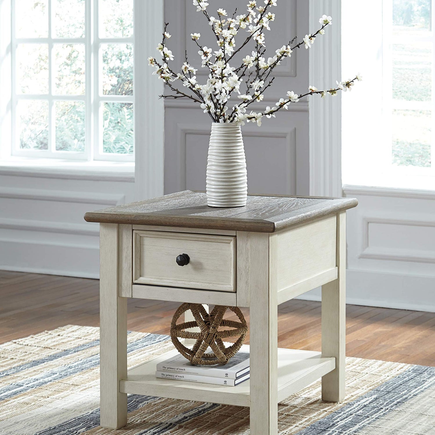 Signature Design by Ashley Bolanburg Farmhouse Square Two Tone End Table, Antique Cream