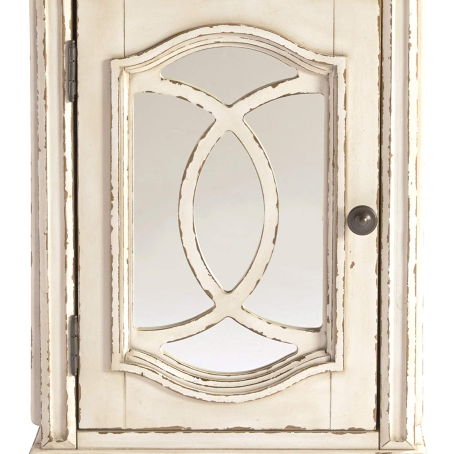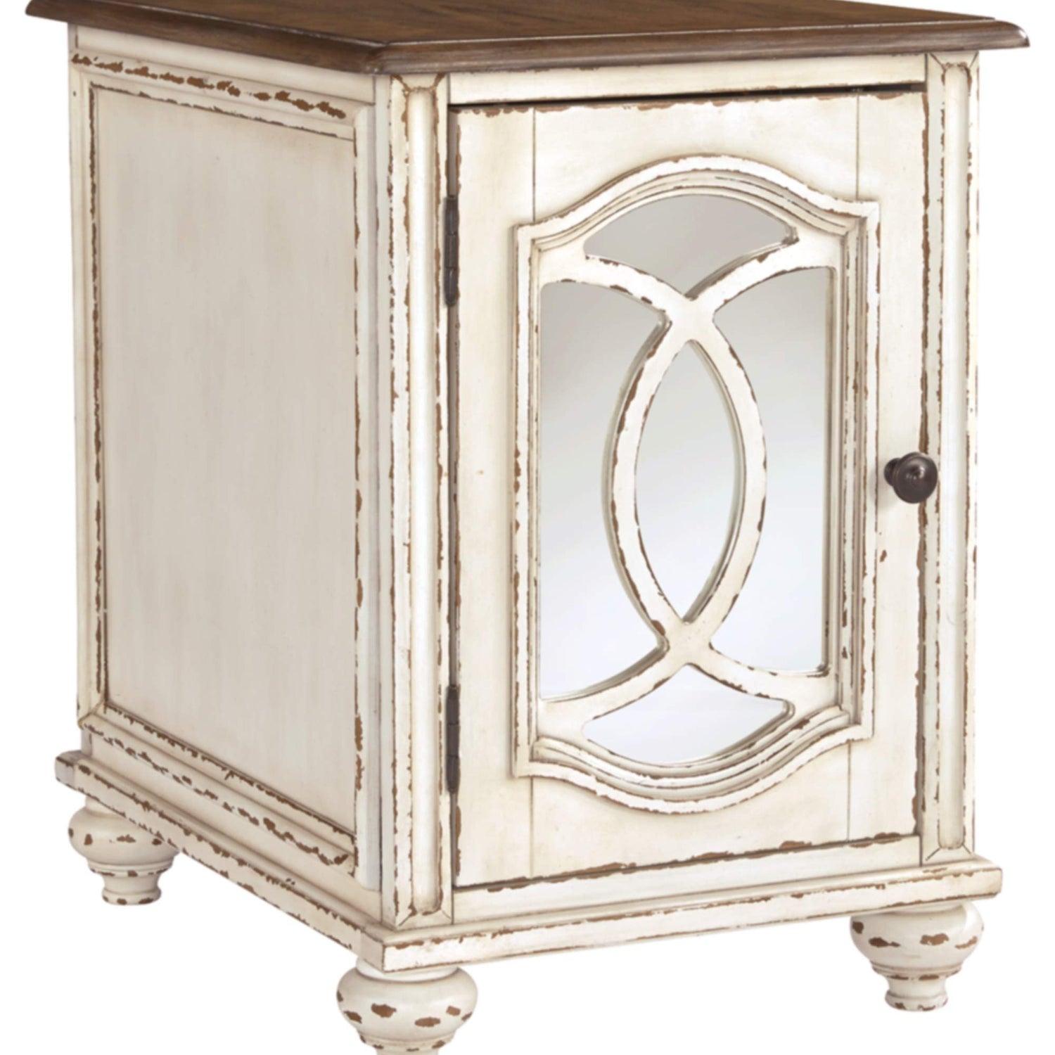 Details: Elevating the art of traditional cottage styling, this chairside end table is sure to serve you beautifully for years to come. Antiqued two-tone aesthetic blends a chipped white with a distressed wood finished top for added charm. Cabinet door features inset mirror with filigree moulding for a fanciful twist. With a wide variety of styles and materials, accent tables can provide storage in a living room, give guests a spot to rest their drinks, and add subtle drama to your decor by presenting a place for artwork, a lamp or a plant. we have a wide selection of accent tables and occasional tables, from rustic farmhouse designs to modern openwork styles. They come in a variety of sizes, too, so you will find one that fits just where you need it.