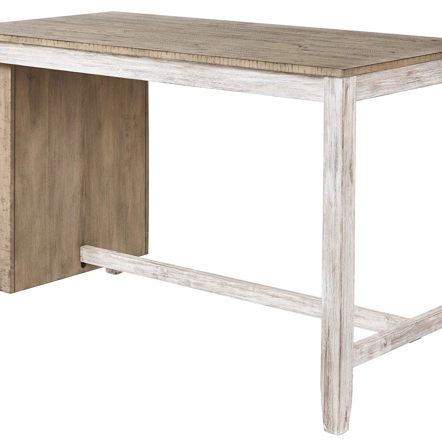 Details: This counter height table with storage invites you to raise the bar on small space living. An inspired choice for coastal chic or modern farmhouse settings, this clean-lined, simply striking table doubles the charm with a brown tone top with plank effect, paired with a grayish white base with rub through effect for timeworn appeal. Built-in 8-bottle wine rack and pair of open shelves make the most of every inch of space. A beautiful dining table will transform every meal into a five-star experience. Dining tables bring families together—inspiring new recipes, feelings and flavors. You can choose from a variety of gorgeous materials to match your style, such as glass, wood or marble. With unmatched prices and quality, we’re your one-stop destination for furniture, home accents and decor.