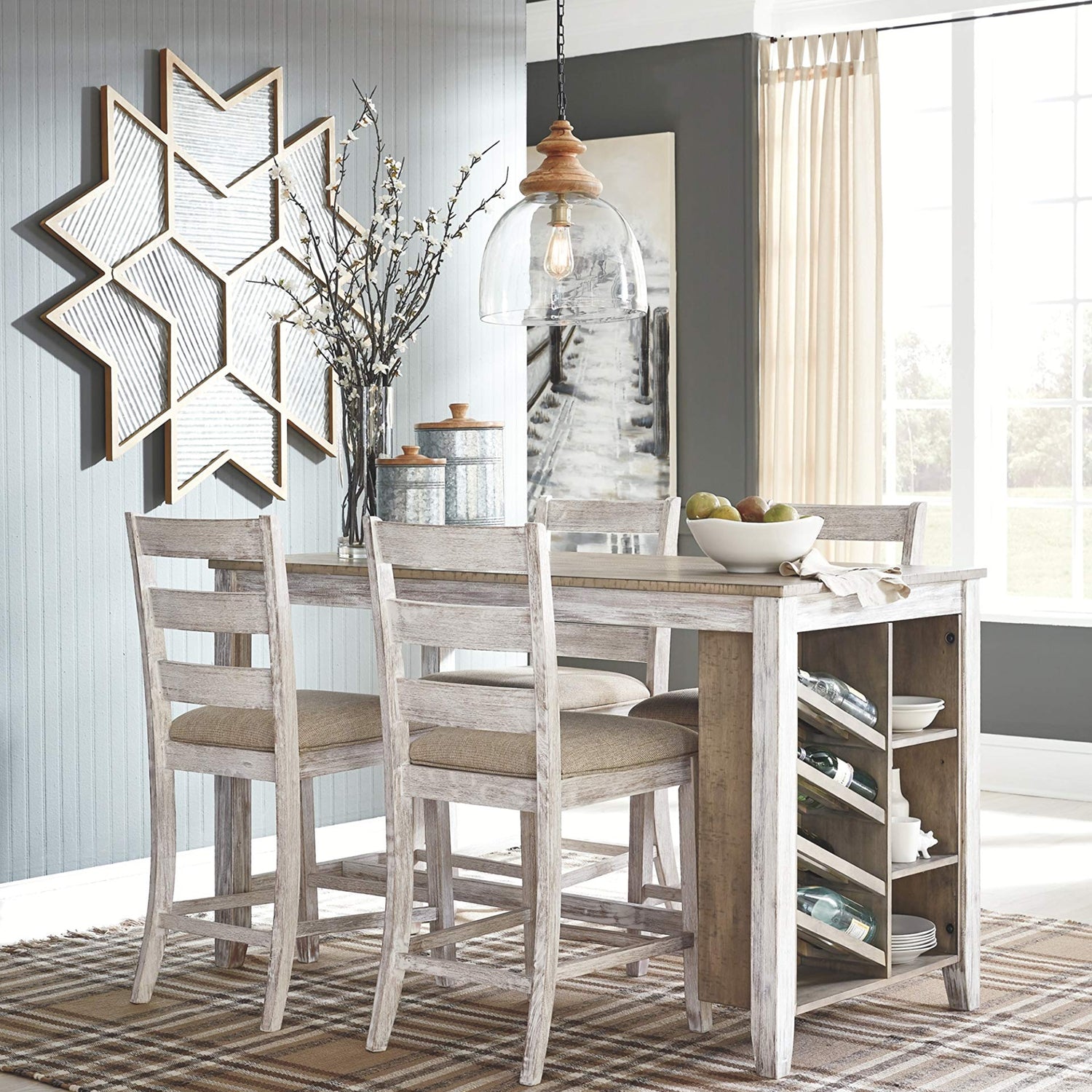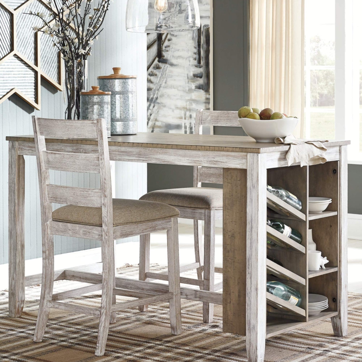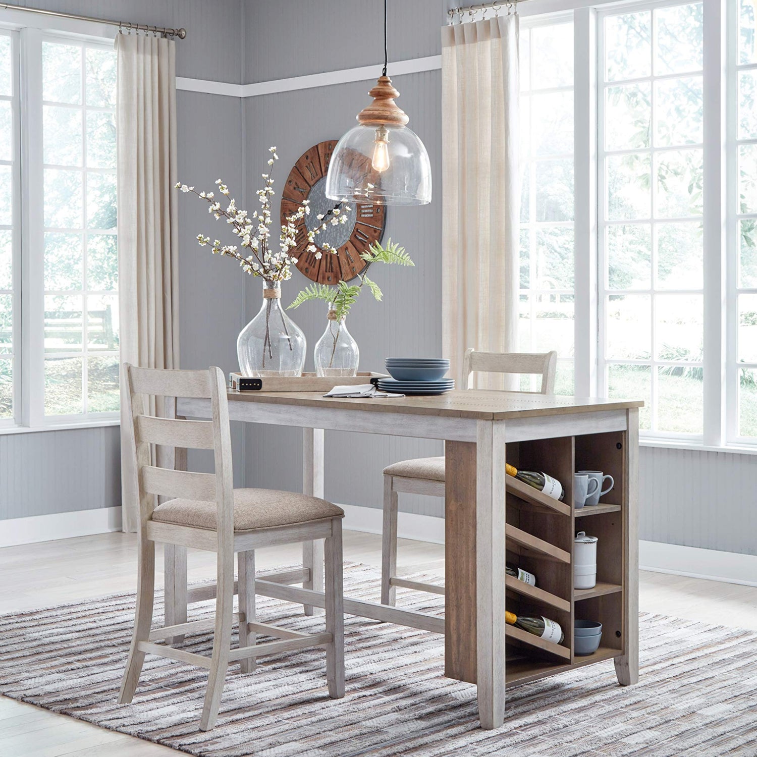 Signature Design by Ashley Skempton Farmhouse 36" Counter Height Dining Table with Storage & Wine Rack, Whitewash