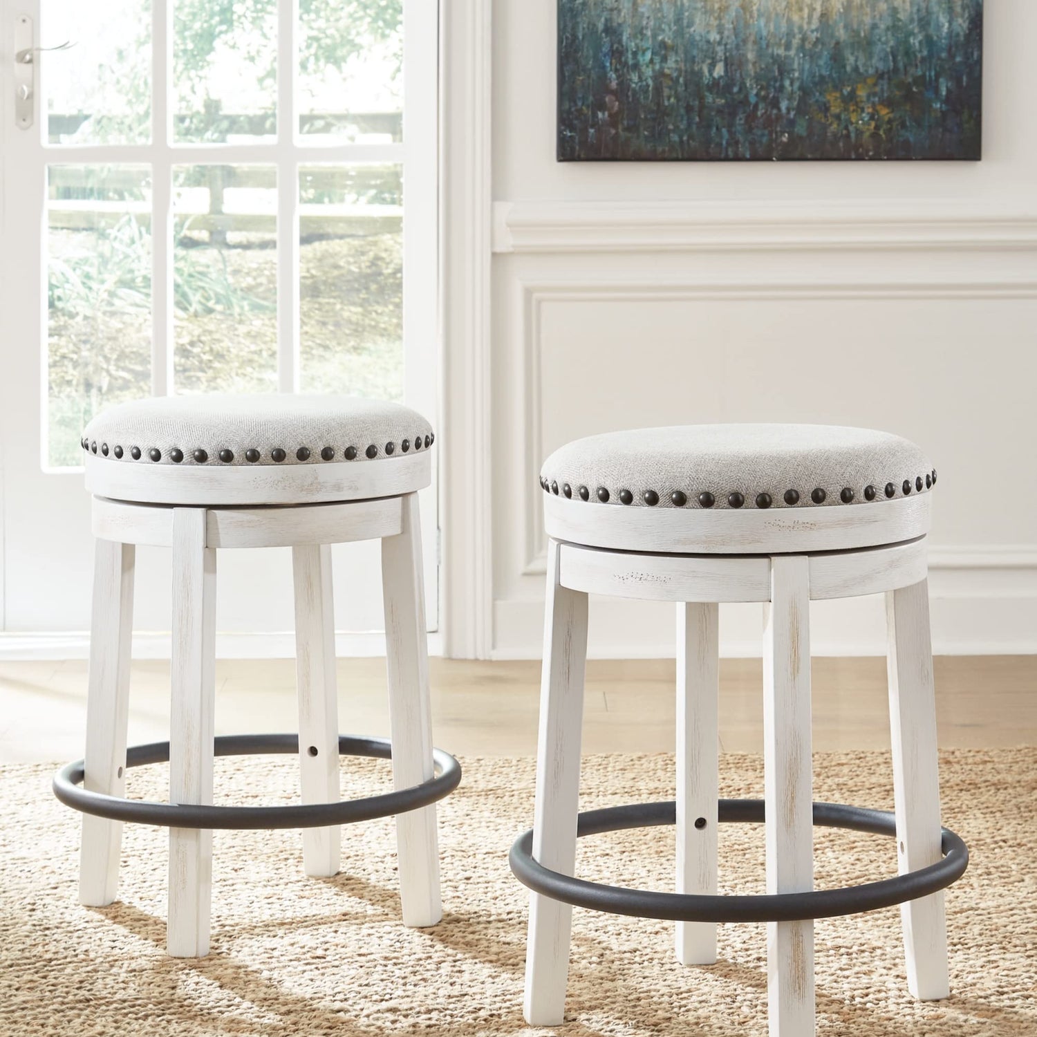 Signature Design by Ashley Valebeck 24" Counter Height Upholstered Swivel Stool, White & Black