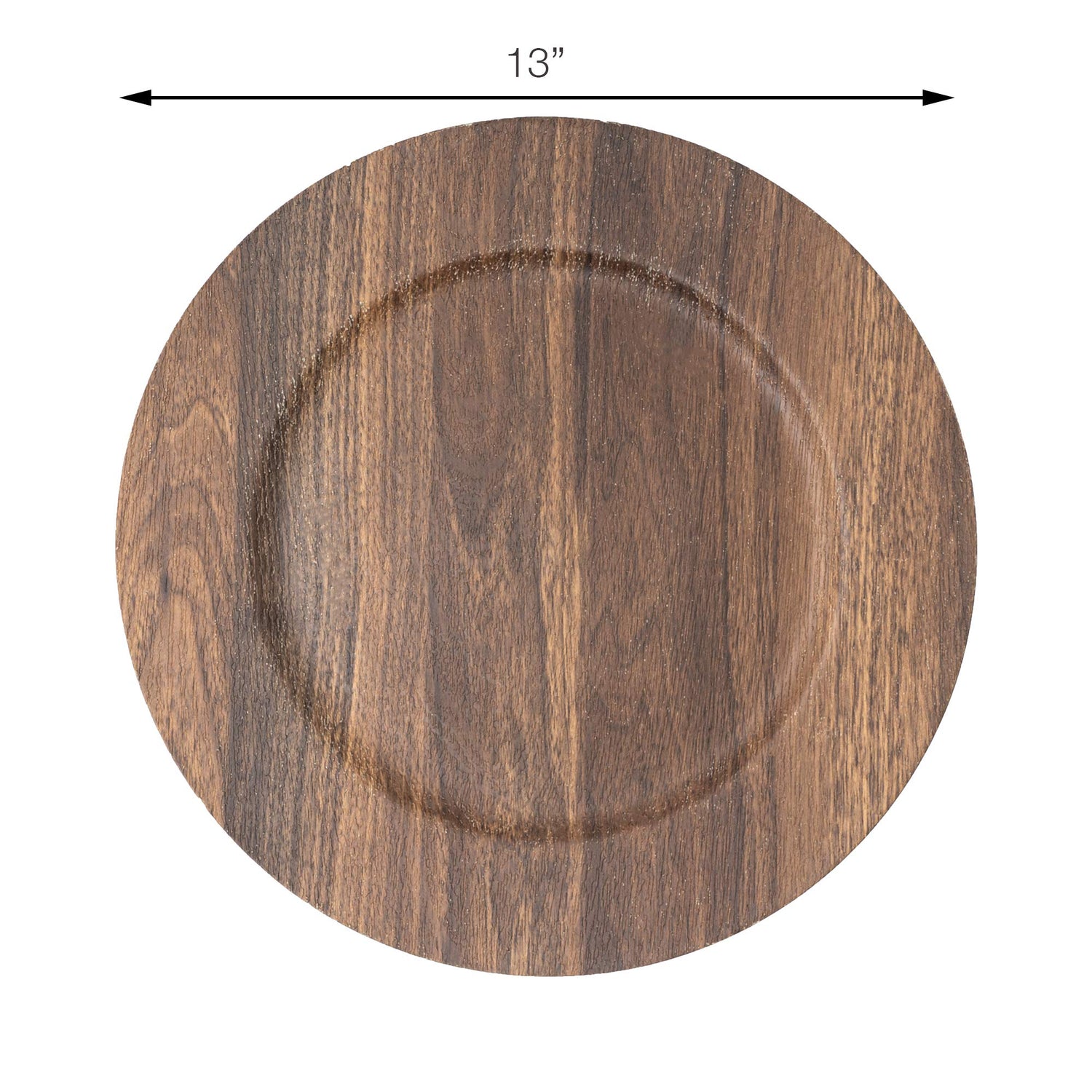 Simply Elegant Set of 6 Faux Wood Plastic Charger Plate | Service Plate for Parties, Dinner, Weddings, Quinceaneras and Events | 13 inch Diameter | Brown Finish