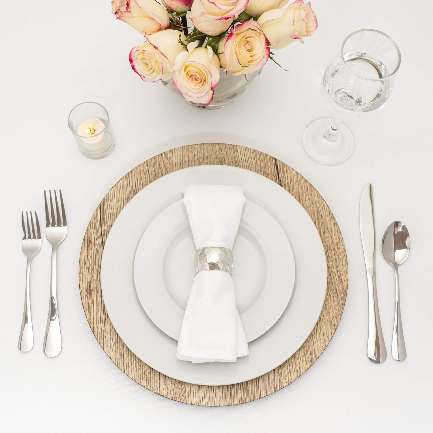Details: The faux wood natural finish of this 13" plastic charger plate is perfect for your bohemian event. They are a really cool way to dress up a boho event, holiday table or wedding party. Made of sturdy, molded plastic and finished for durability.