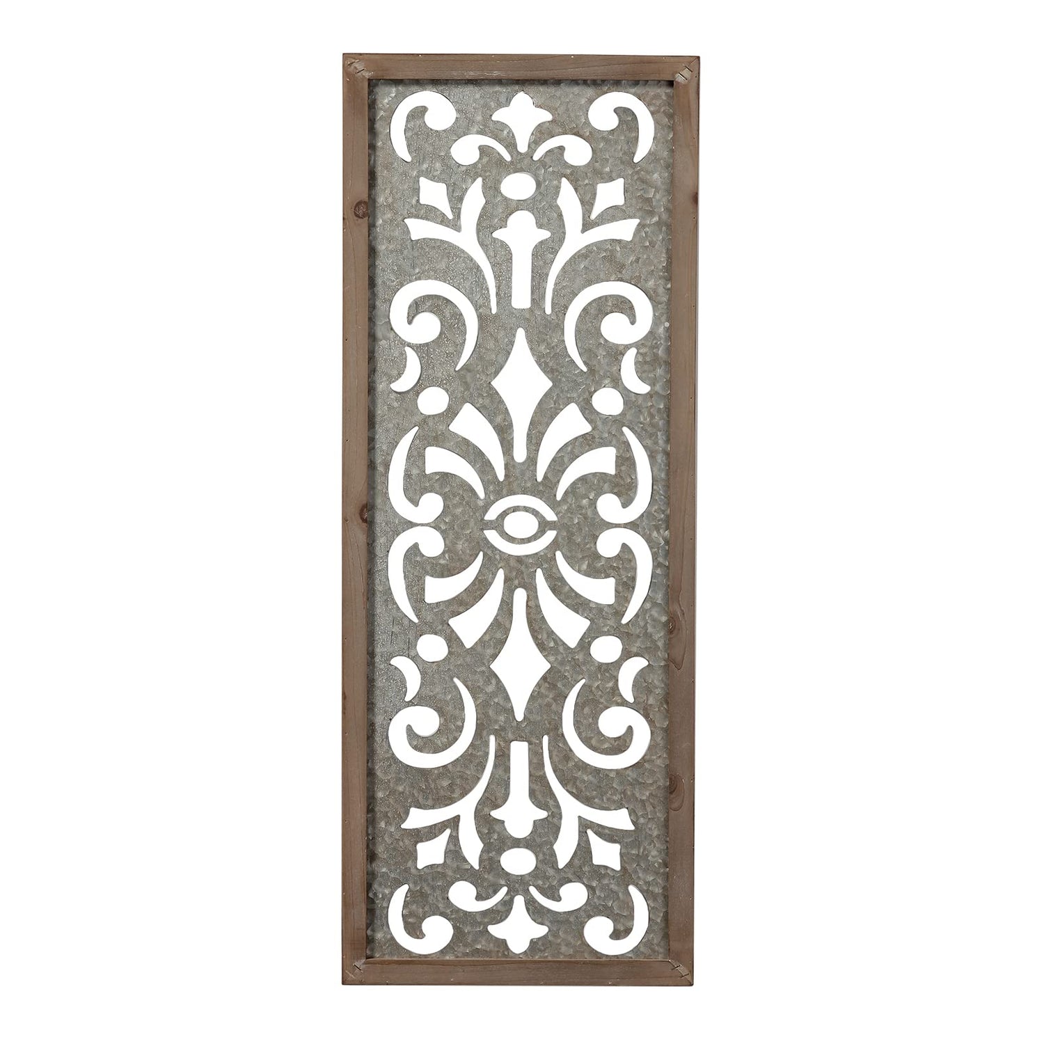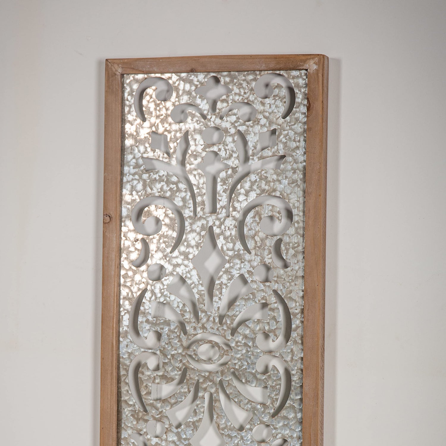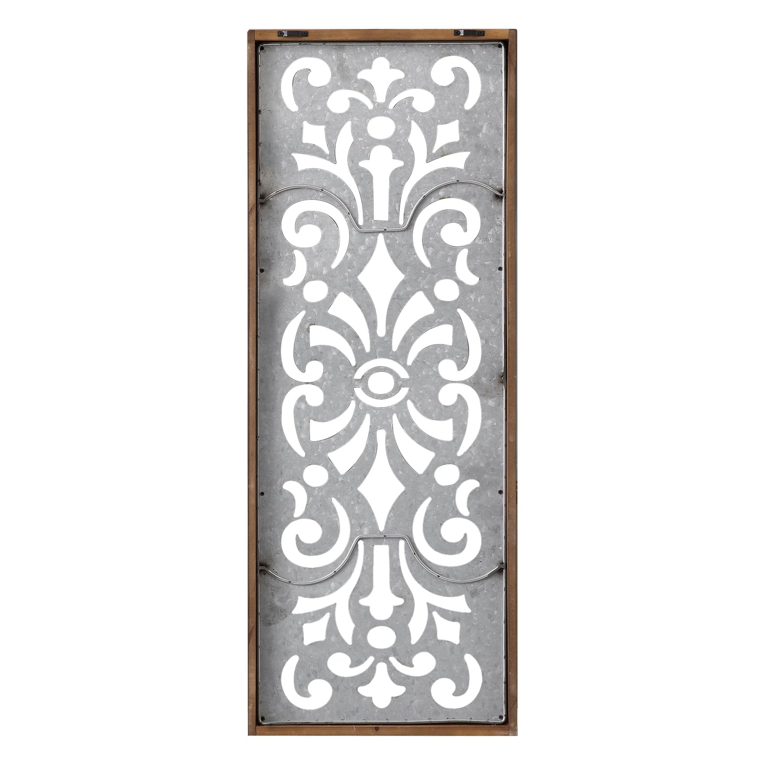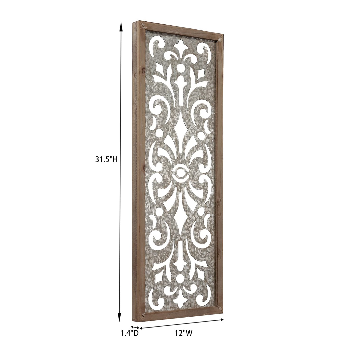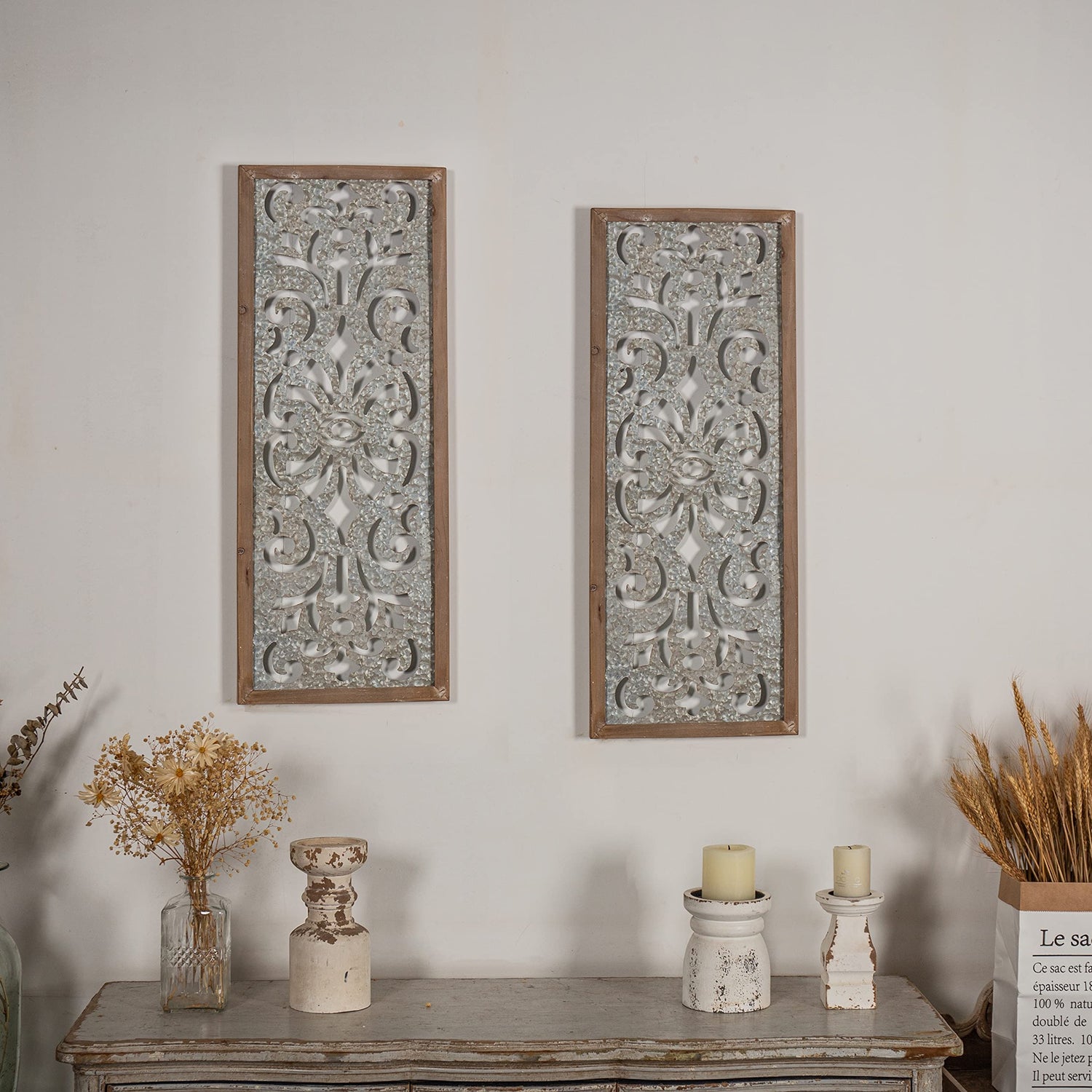 - [RUSTIC WOOD AND METAL WALL PANEL] The farmhouse wall decor design is bordered by a wooden, rectangular wooden frame, lending a victorian country farmhouse look to this rustic wall art. The combination of distressed wood gives this wall accent piece a vintage, antique appeal.