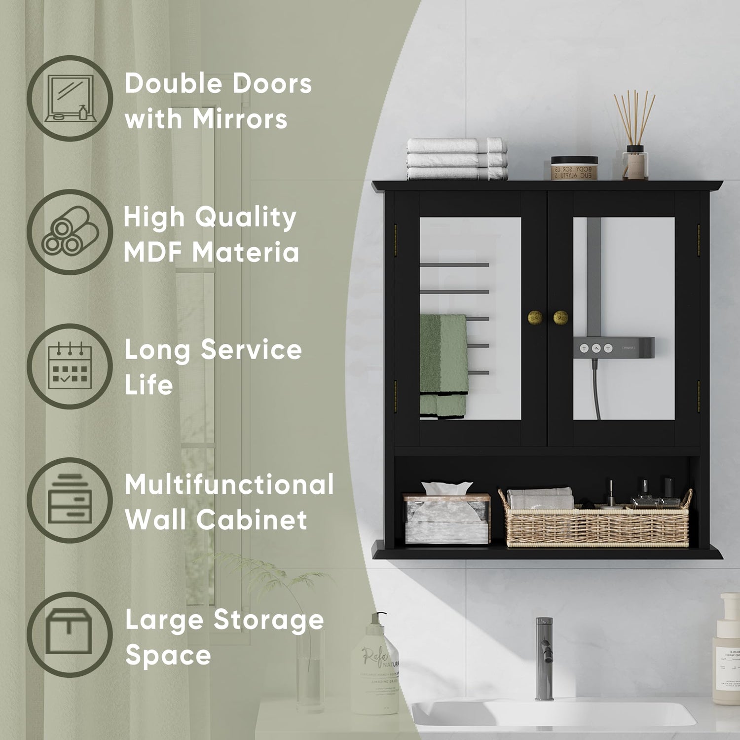 Smuxee Bathroom Wall Cabinet with Mirrors, Black Bathroom Medicine Cabinet with Adjustable Shelves, Over Toilet Cabinet for Bathroom Laundry Room Kitchen