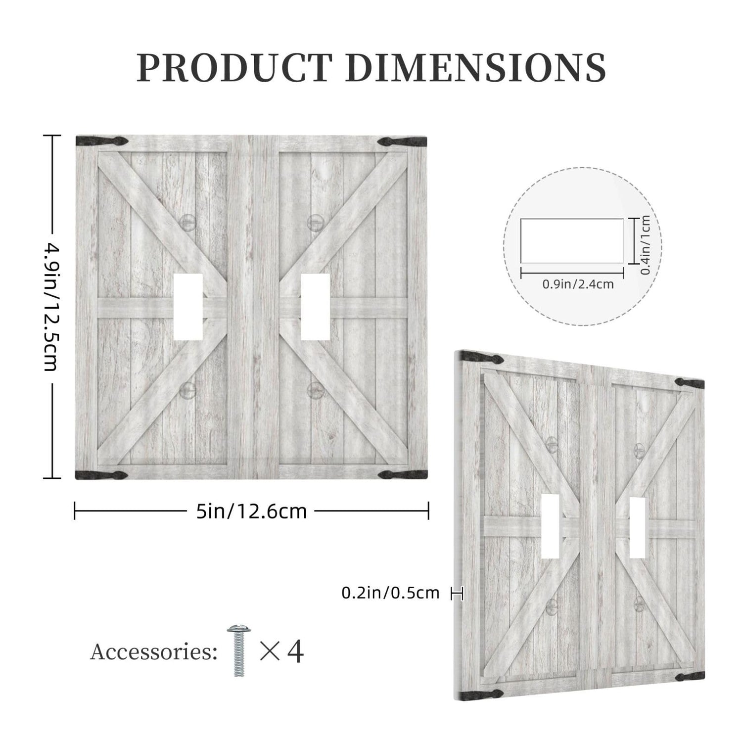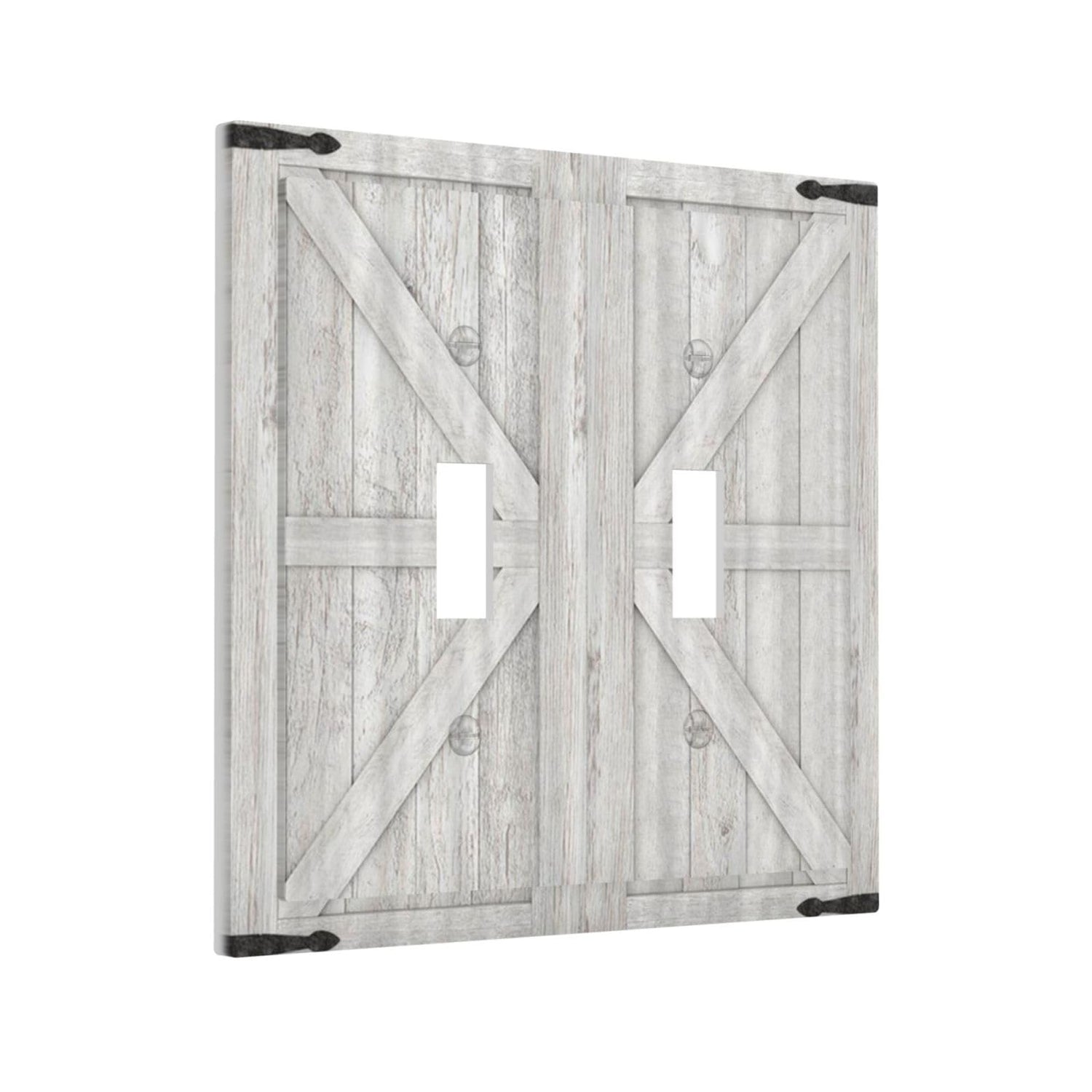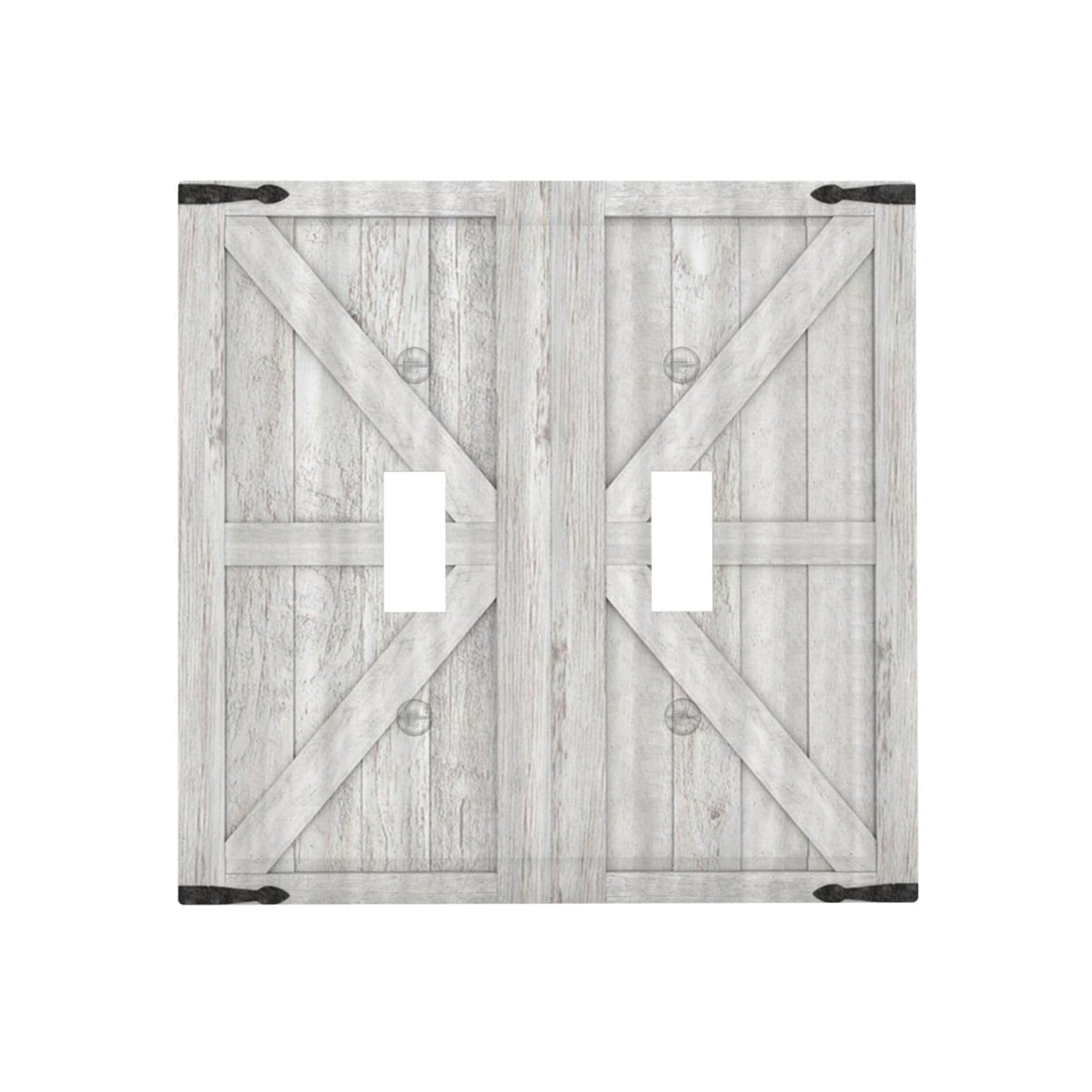 Spshian Decorative Switch Plate Covers Rustic Wooden White Barn Doors 2 Gang Wall Plate Double Toggle Light Switch Cover Plate Electric Dual Device Electrical Faceplate for Kitchen Farmhouse Bedroom