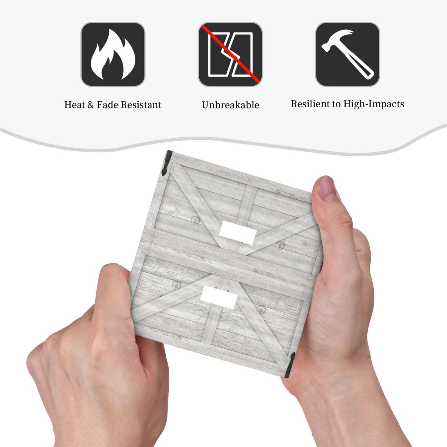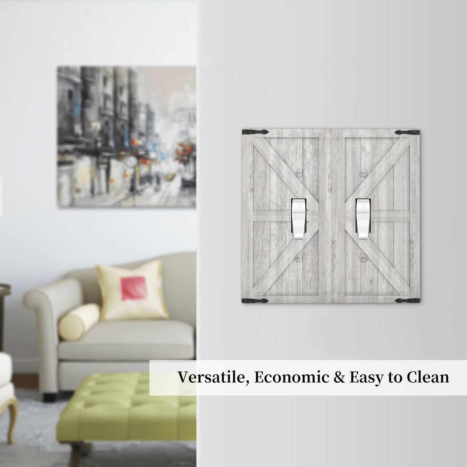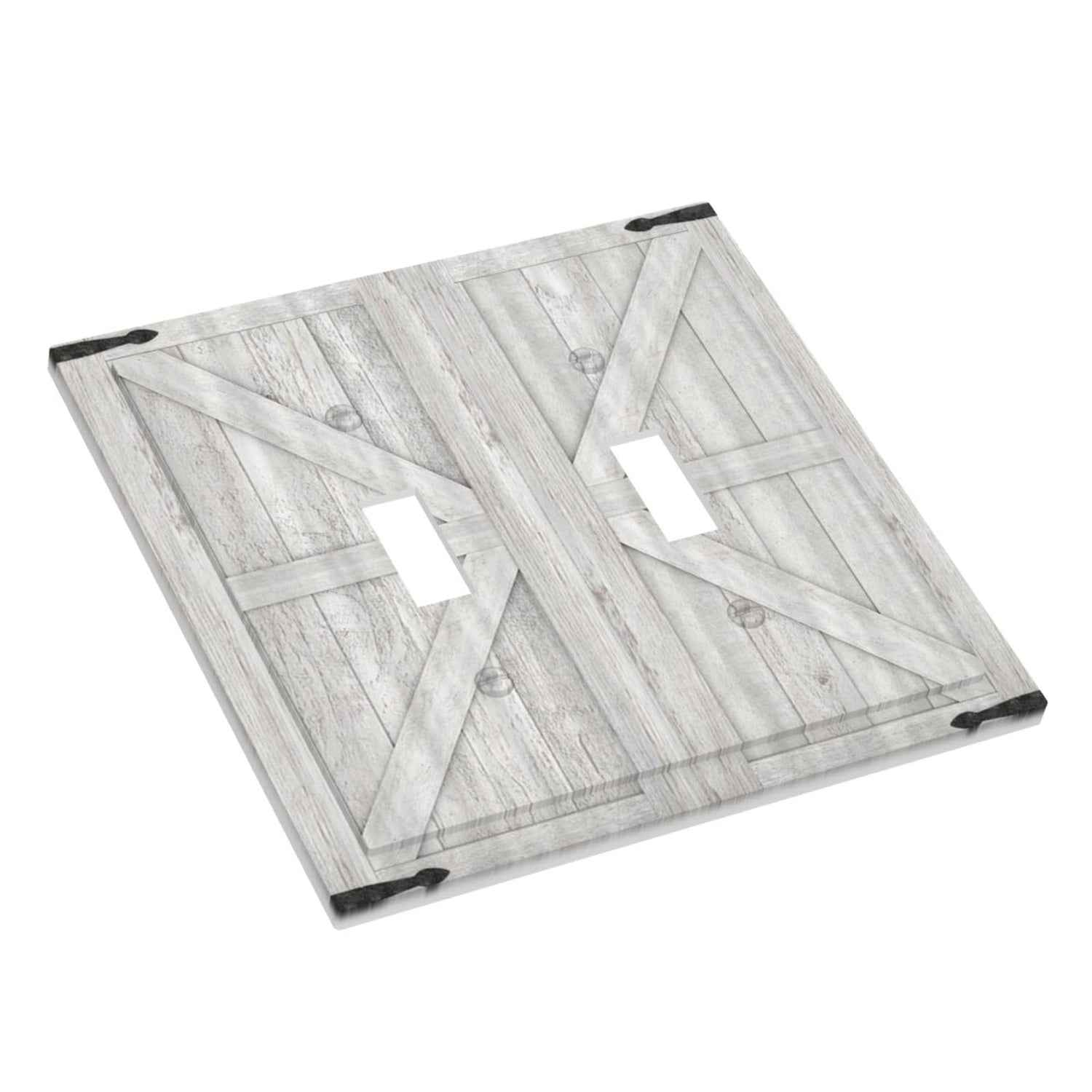 Spshian Decorative Switch Plate Covers Rustic Wooden White Barn Doors 2 Gang Wall Plate Double Toggle Light Switch Cover Plate Electric Dual Device Electrical Faceplate for Kitchen Farmhouse Bedroom