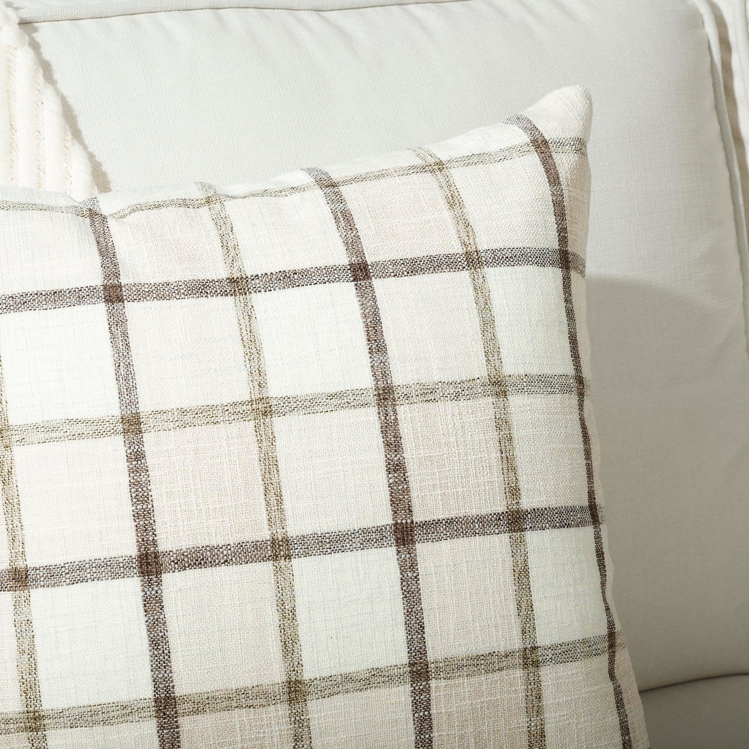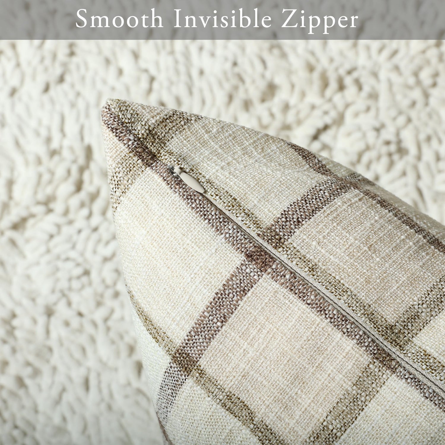 Stellhome Fall Linen Buffalo Check Throw Pillow Covers, Autumn Farmhouse Plaid Decorative Cushion Covers for Couch Sofa Living Room, Pack of 2, 18x18 Inch, Beige