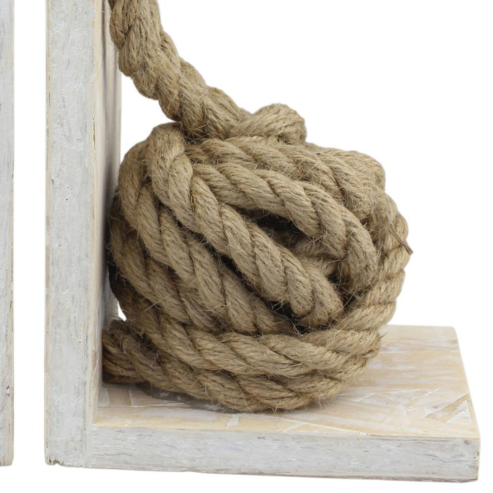 Details: The set of 2 rope Knot bookends adds the right amount of nautical accent to any home or office. bring the beach house inland and show to add to your collection. the weathered white wood adds a casual feel to the decor piece