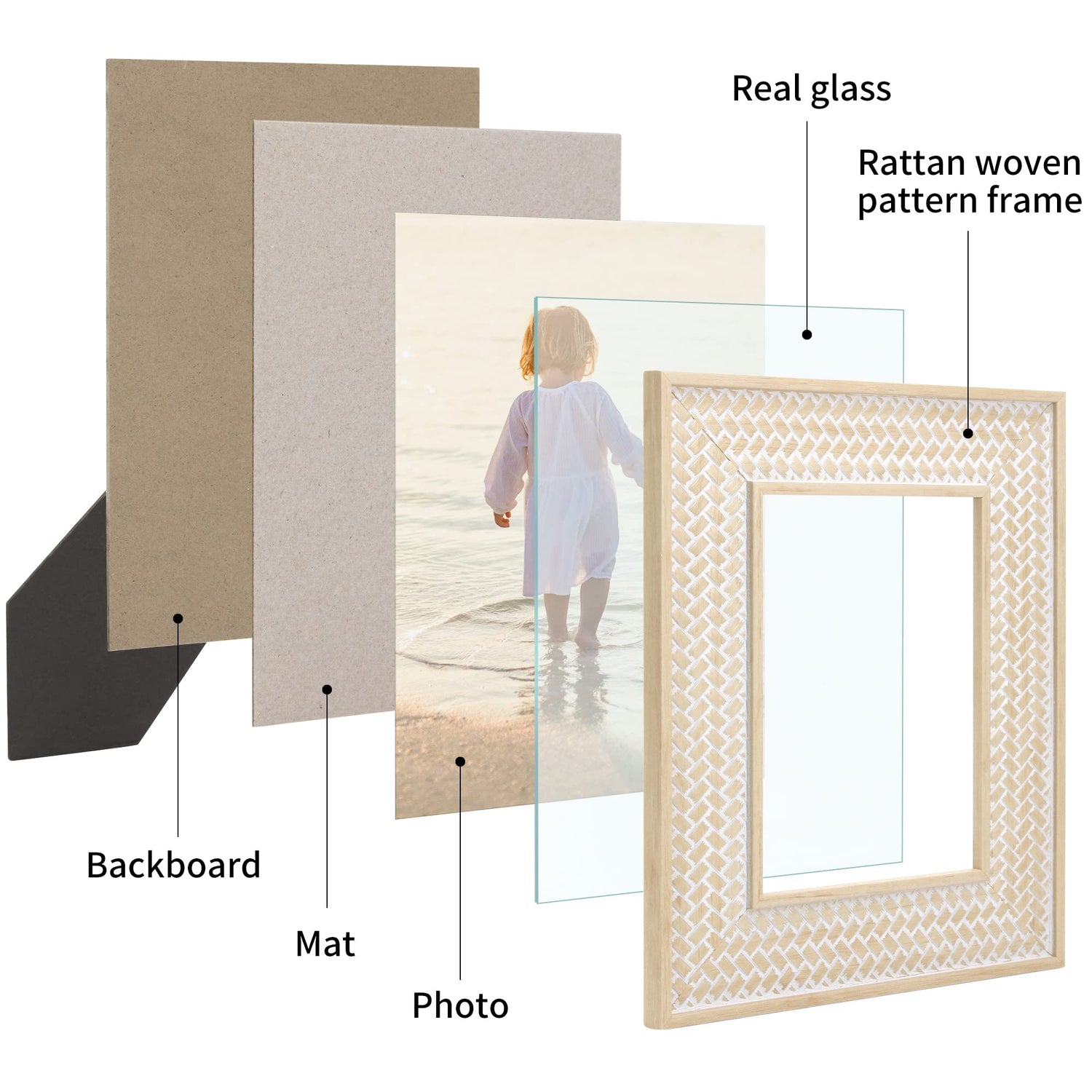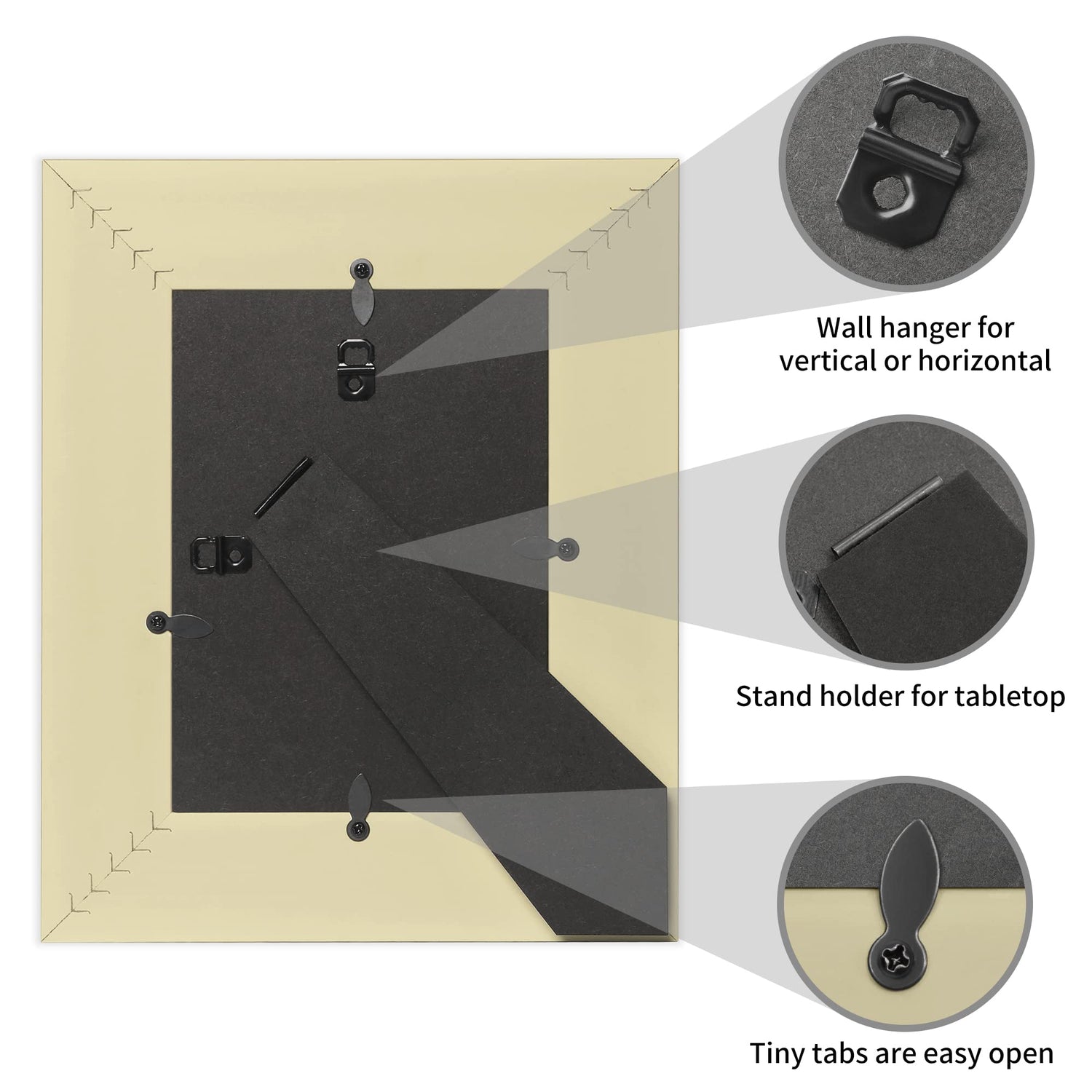 • 【WALL MOUNT or TABLE TOP】Come with 2 Packs. 5"x7"(13x18 cm) Photo Frames with hanger and hooks in the back for vertical and horizontal hanging options. Also for tabletop display.