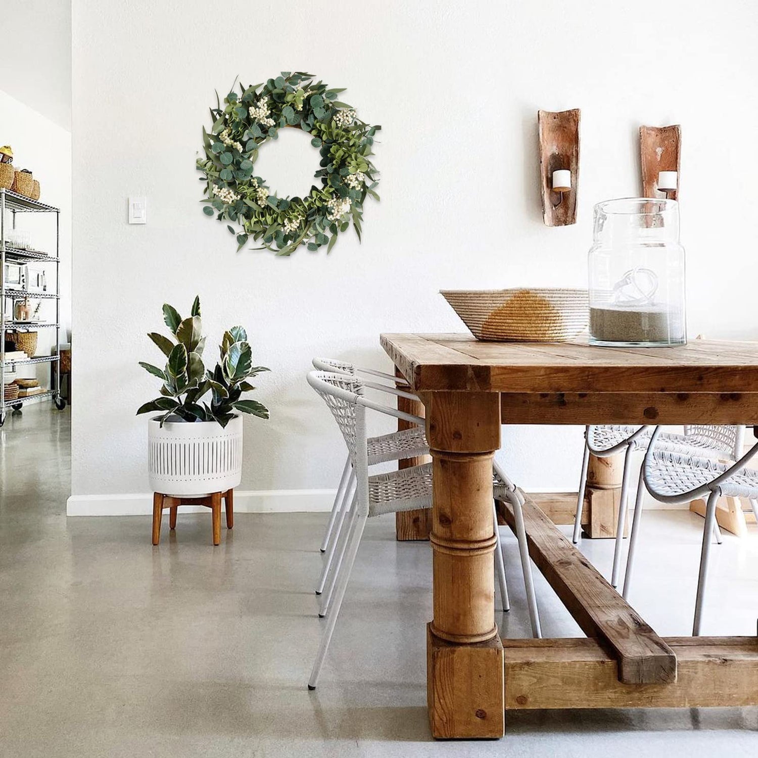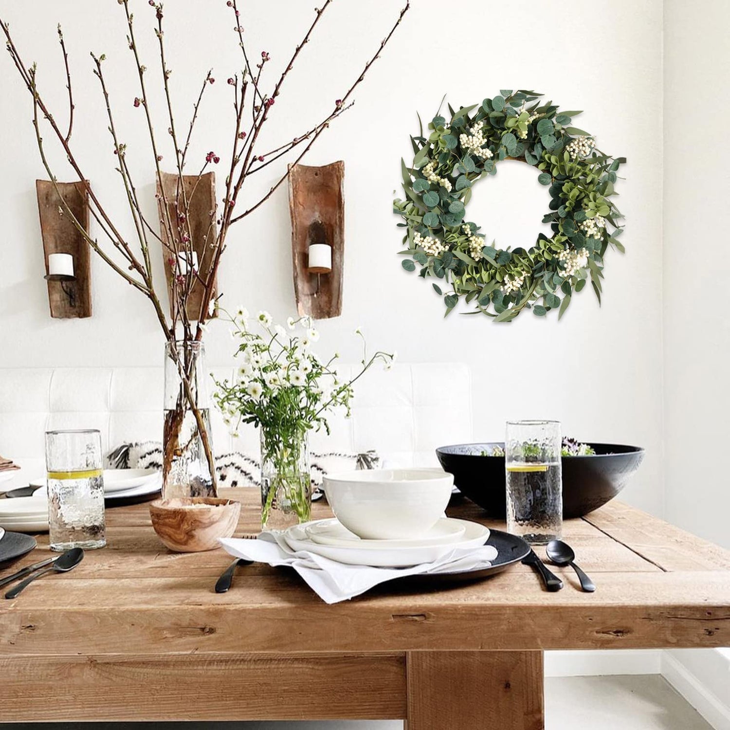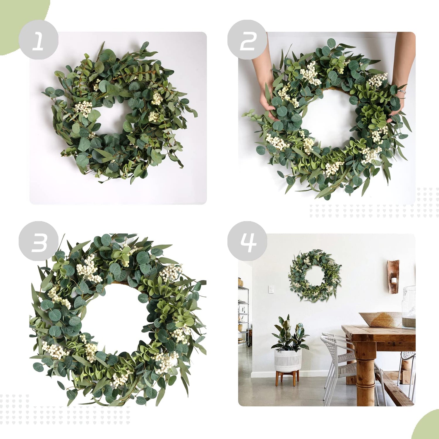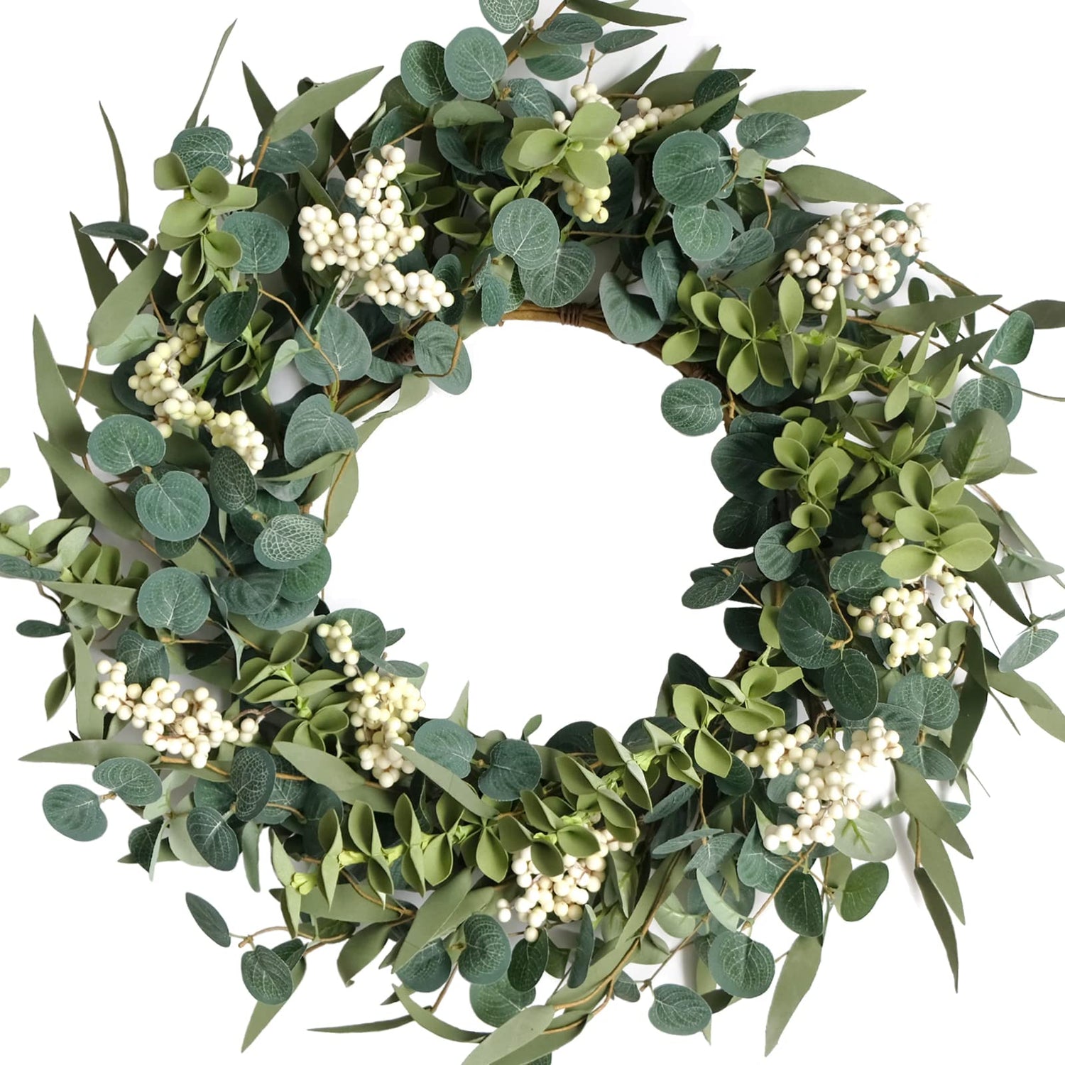 • ✨ All-Season Elegance in 20 Inches With a generous 20-inch diameter, this wreath creates a striking focal point for any space. Its lush blend of artificial eucalyptus leaves, willow sprigs, and tiny white berries mimics nature’s perfection, offering a fresh, vibrant look for spring, summer, holidays, or everyday decor.