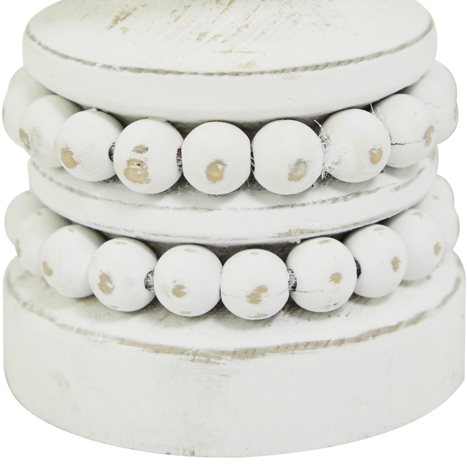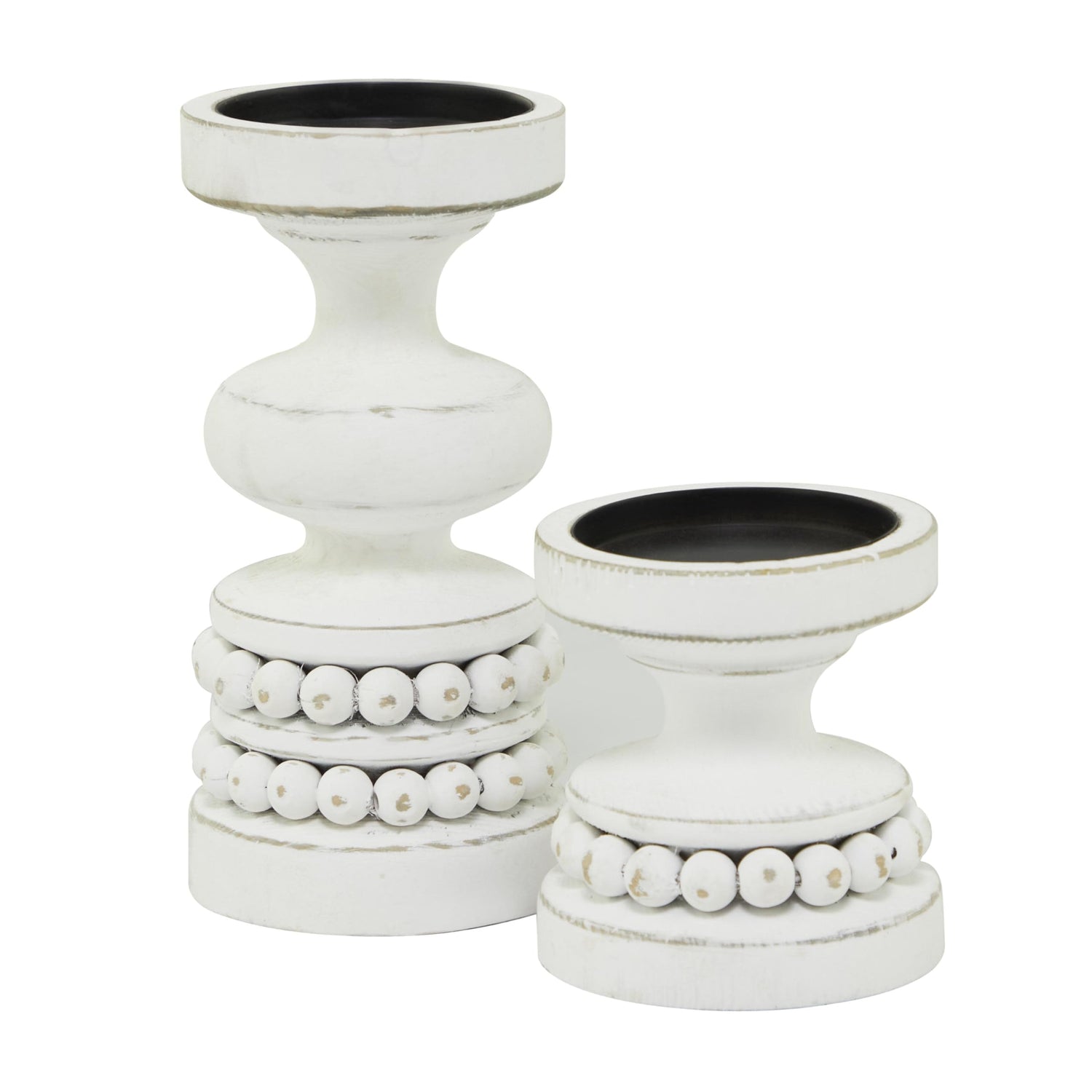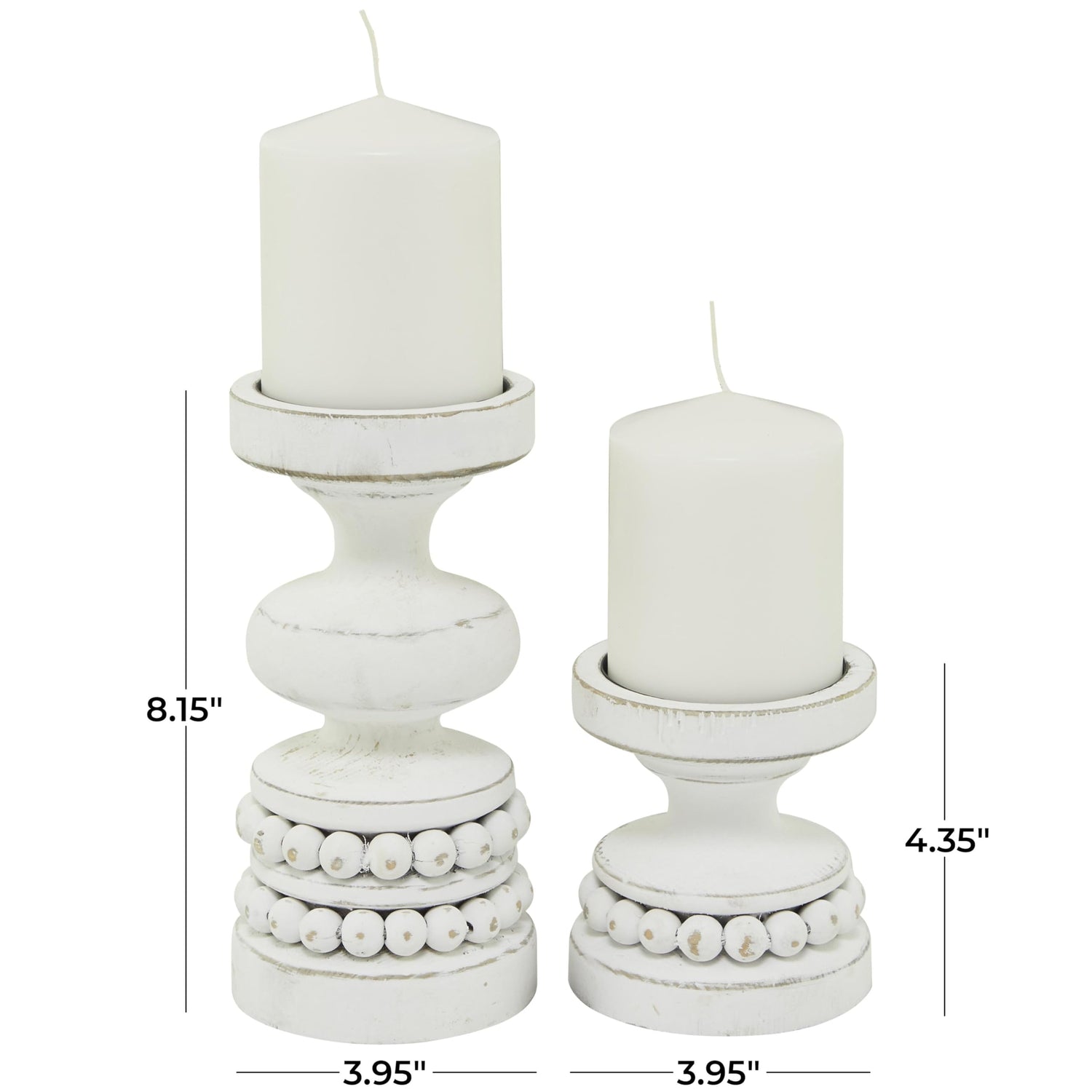 The Novogratz Wood Decorative Candle Holder Beaded Pillar Candle Stand, Set of 2 Candlestick Holder 8", 4"H, White