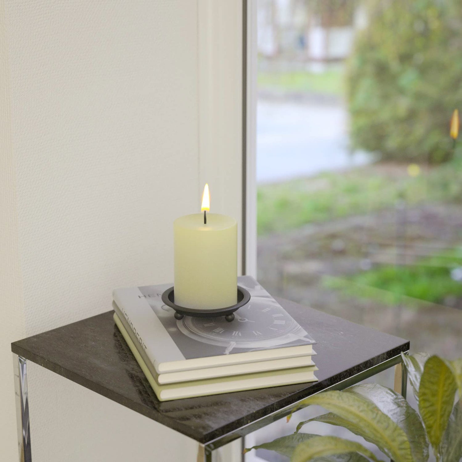 Thindolex Matte Black Iron Candle Plate, Set of 2, Metal Saucer Style Candle Holder for Pillar/Scented/Flameless/Ball Candles, Decorative Candle Stand for Table Centerpiece