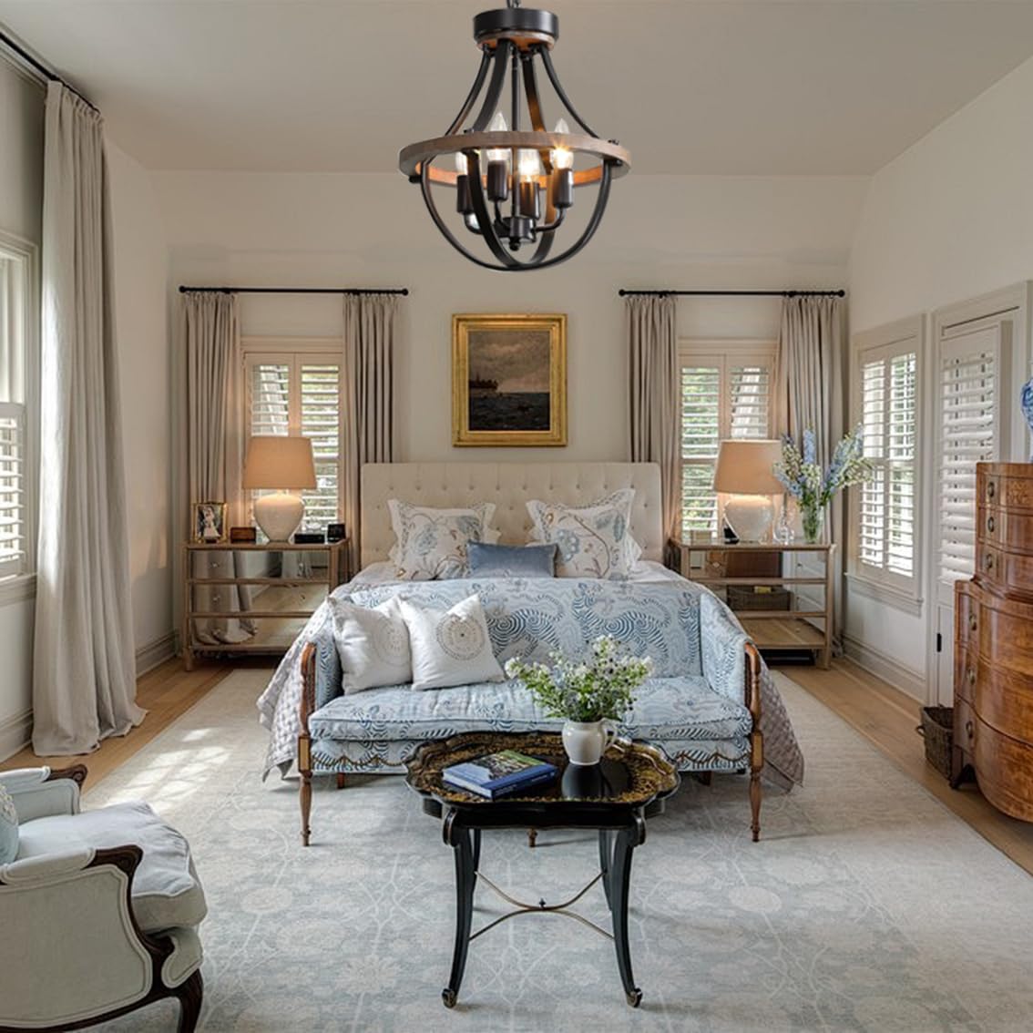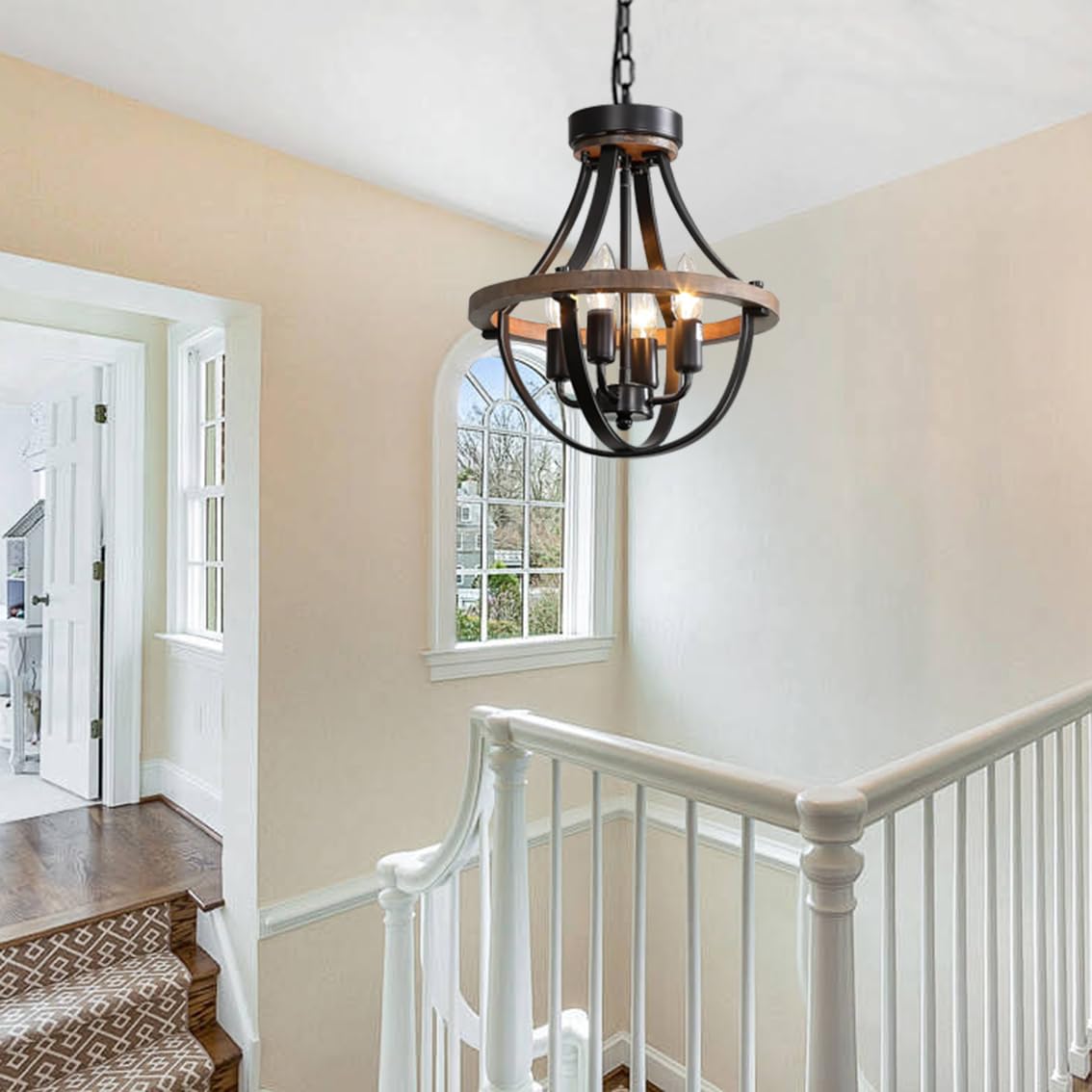 Threebro Chandeliers,Farmhouse Ceiling Chandelier Wood Black Modern Rustic Hanging Pendant Light Fixture with Chain for Dining Room Living Room Entryway Kitchen Island Bedroom Foyer Lighting(4-Light)