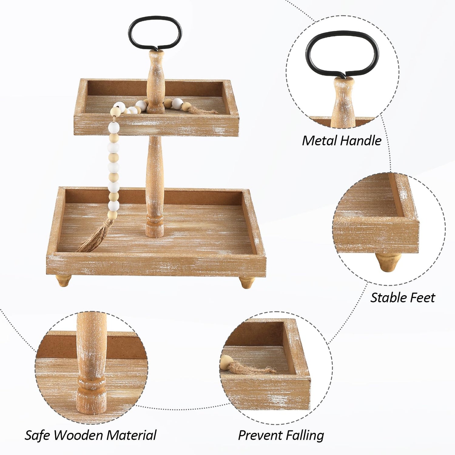 - 【Sturdy Construction】Crafted from durable wood, the tiered tray stand offers a stable platform for heavier items, with a timeless, eco-friendly appeal.