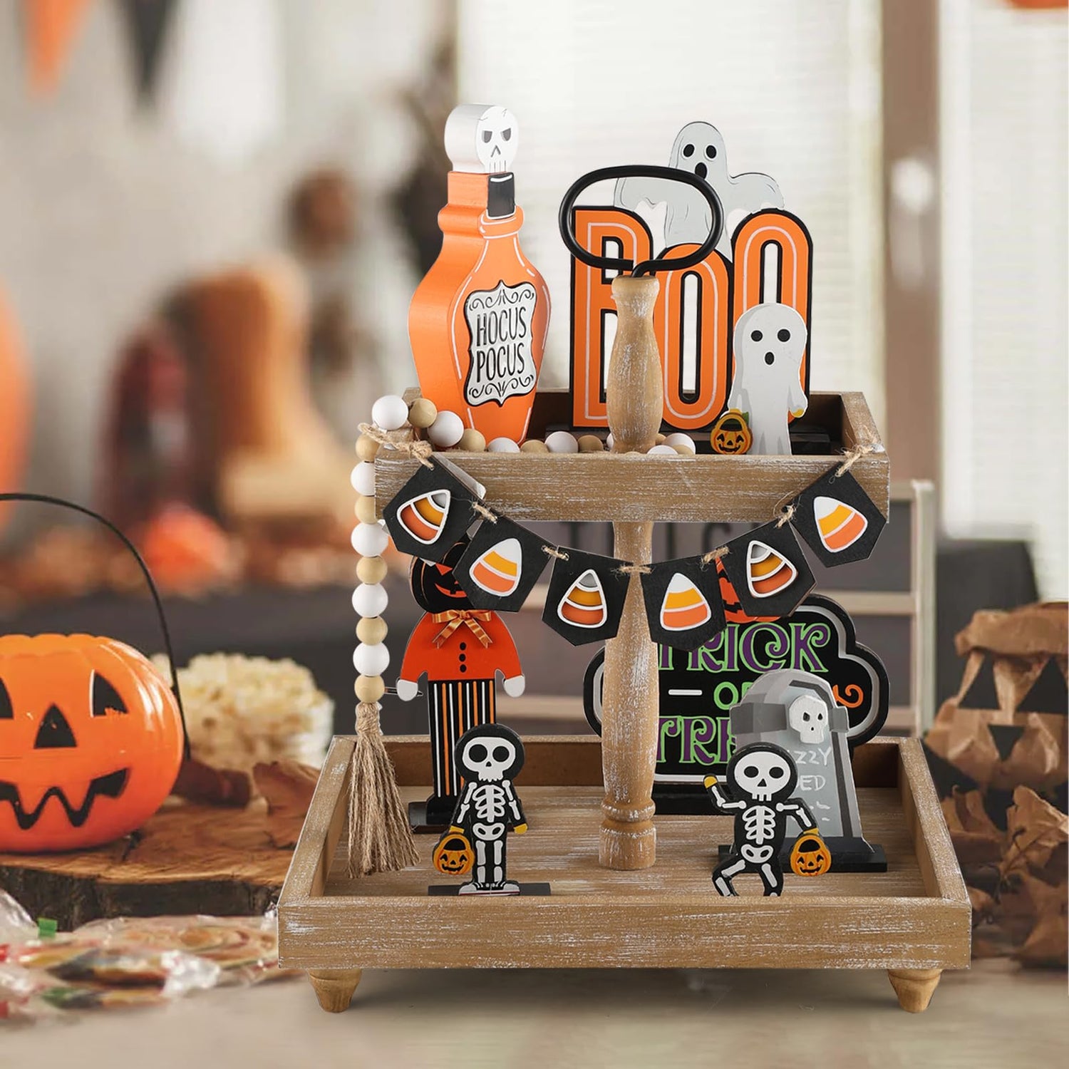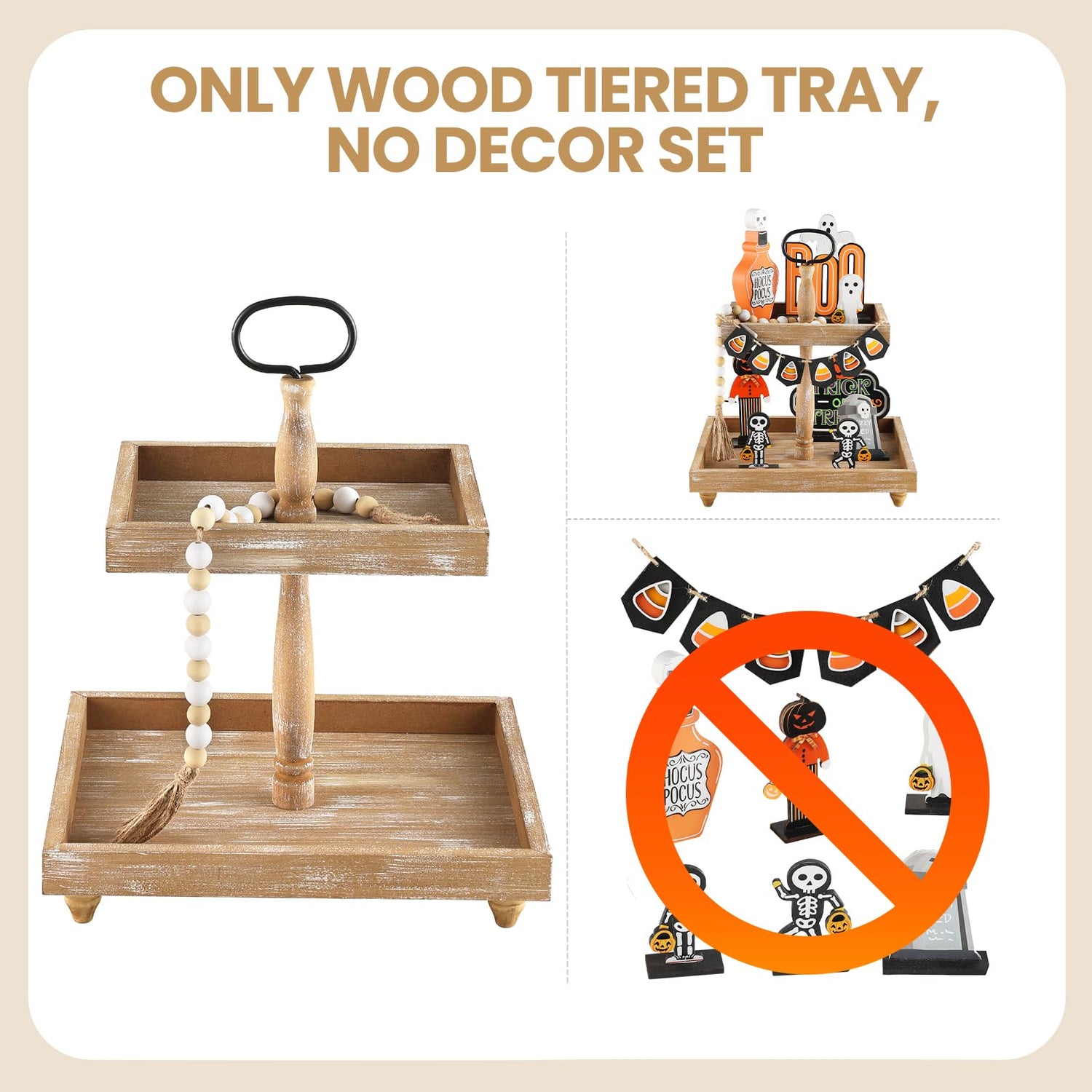 - 【Stylish Display】The wooden tiered tray stand adds a rustic and elegant charm to any space, perfect for displaying decorative items, desserts, or seasonal decor.
