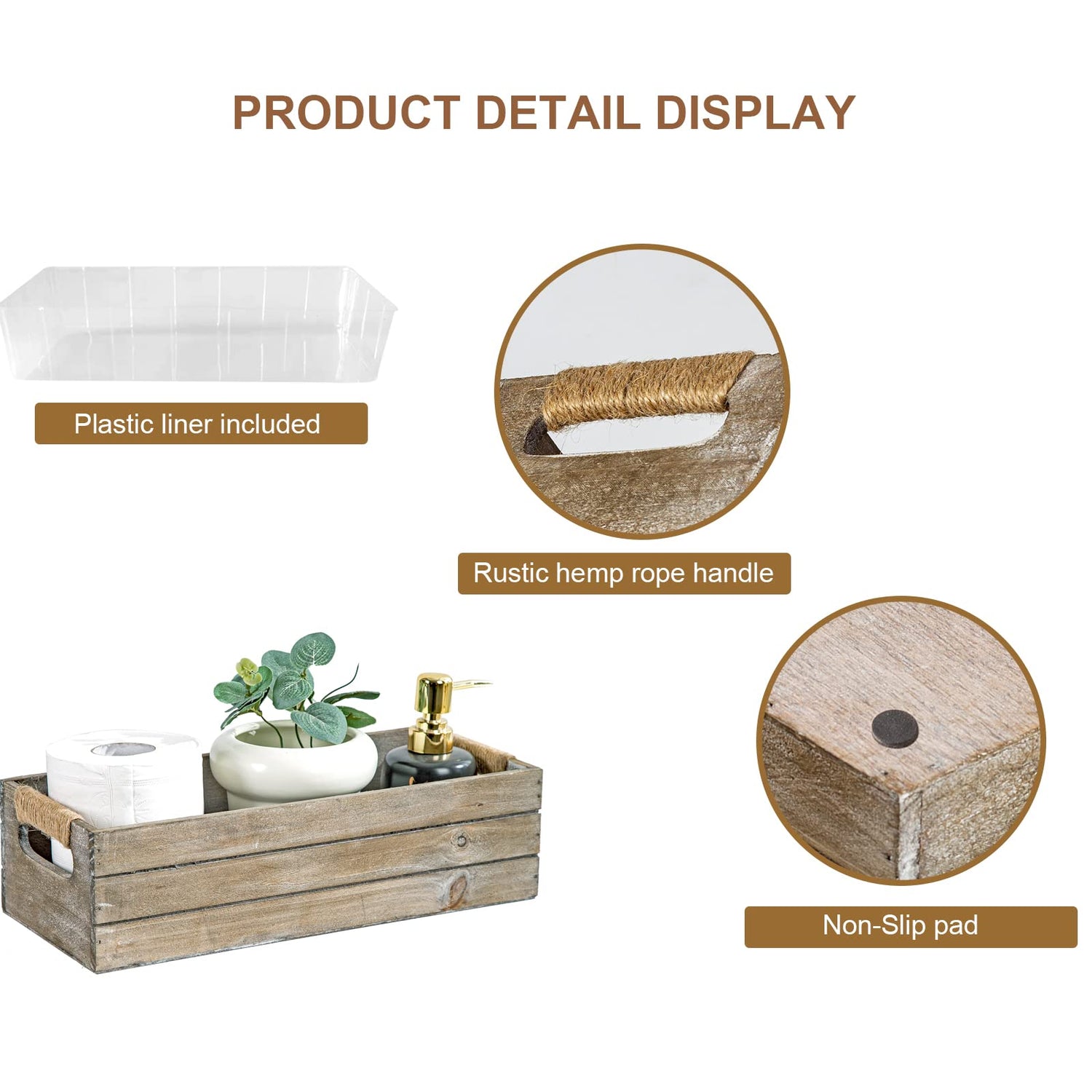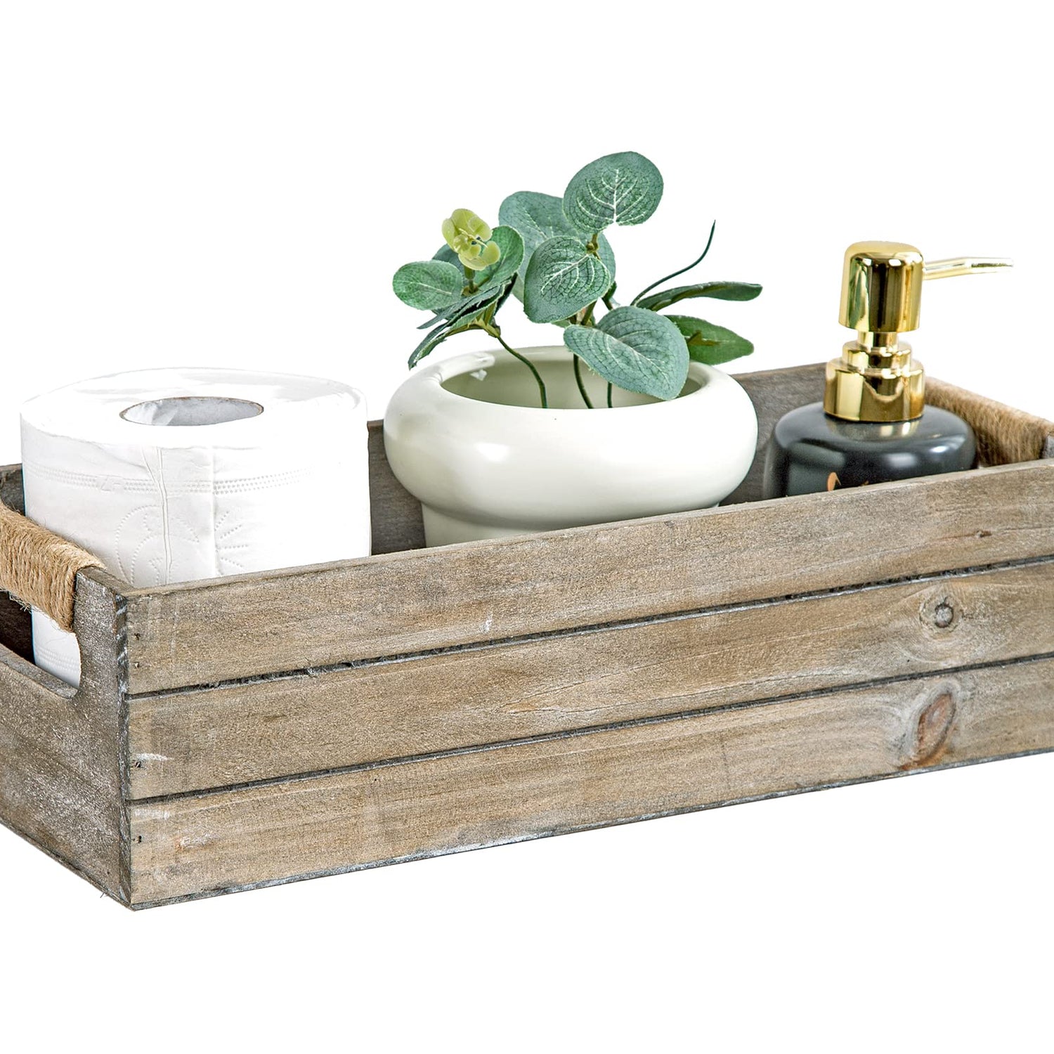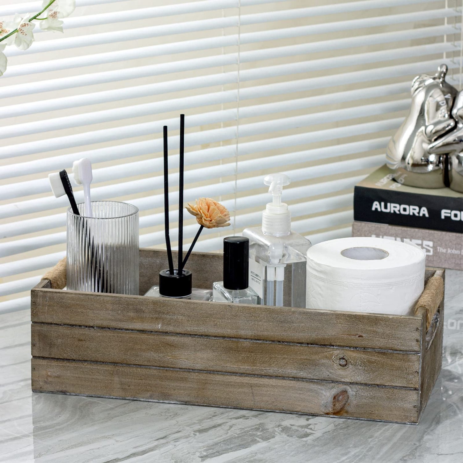 TIMRIS Rustic Wooden Box, Farmhouse Bathroom Decor Box, Wooden Toilet Paper Holder, Toilet Tank Basket, Decorative Storage Container Box (Rustic Gray)