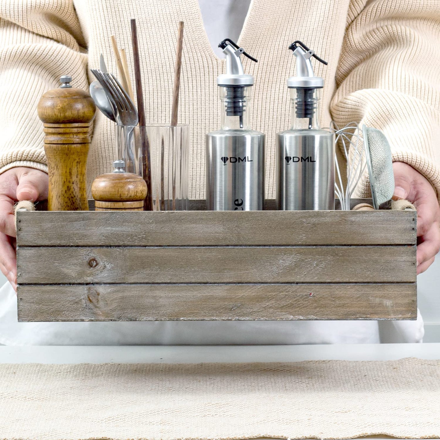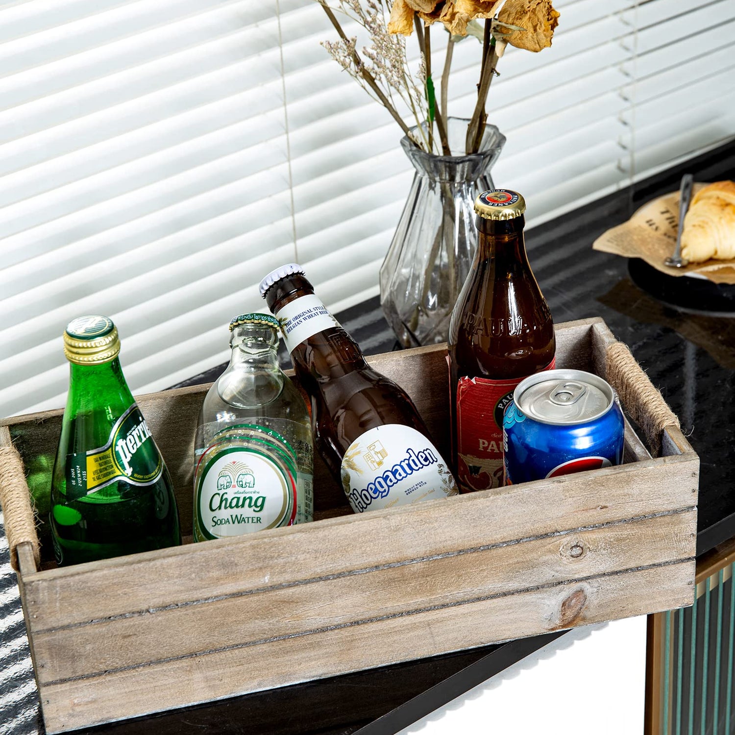 - UNIQUE DESIGN – The rectangular wooden container has natural wood grain and knots on the surface, so each box is unique. The farmhouse jute rope cutout handles make the box a vintage look that allow you to carry it around with ease.