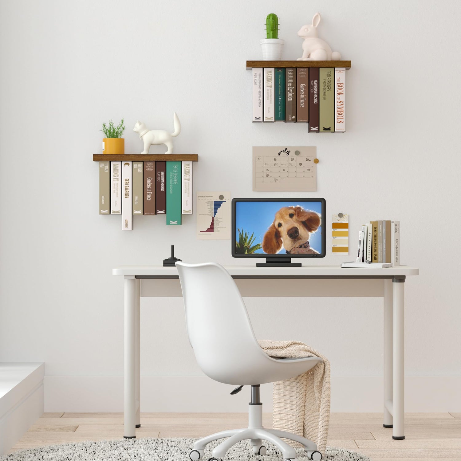- Sturdy and Reliable: Our wall bookshelves come with heavy duty metal mounting bracket that installs into the wall, additional screws on the bottom lock down the book shelf floating and prevent it from tilting or sliding off the wall. The wall bookshelf firmly fits on the wall even when it is full load of books underneath and decorations above.