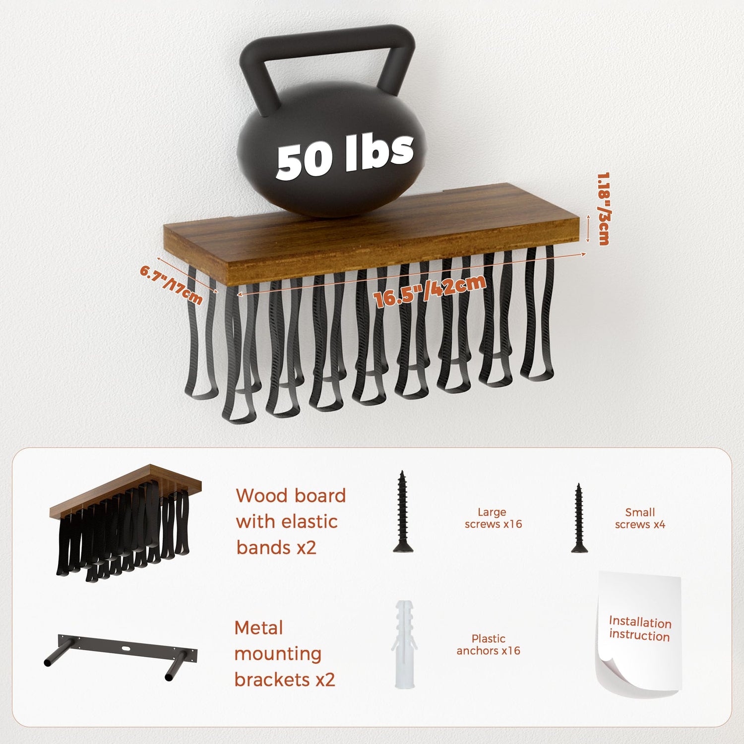 - Wooden Floating Wall Shelves: The floating bookshelves are handcrafted from 1.18" thick natural Paulownia wood measuring 16.5" Wide x 6.7" Deep x 1.18". Each wall mounted bookshelf comes with high quality elastic bands fixed under the board and can hold up to 8 books.