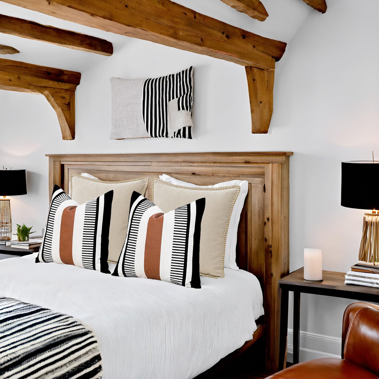 - SPECIAL DESIGN: Neutral color adds faux leather stitching make this throw pillowcase more stylish and classic. Bohemian tribal stripe keep the pillowcase from looking dull. This chic boho cushion cover will be the highlight of your sofa. Nice accent pillow cover for your home decor.