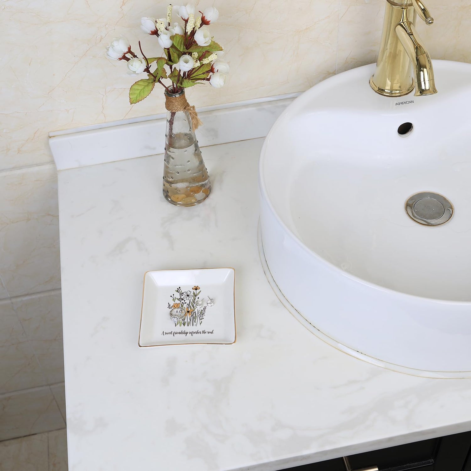 VINCOMIC Friendship Christmas Gifts for Women Friends, Ring Trinket Dish, Jewelry Tray-A Sweet Friendship Refreshes the Soul, Ceramic White