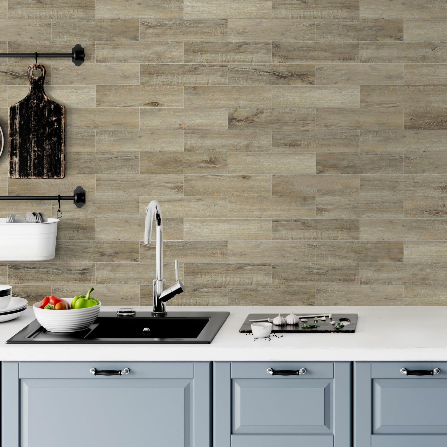 • 「Material」Realistic wood grain texture appearance of vintage farmhouse style. The self-stick brick tiles are made of SPC(stone composite), waterproof and heat resistance, do not fade or deform, easy to clean and maintain. It is a totally rental friendly products