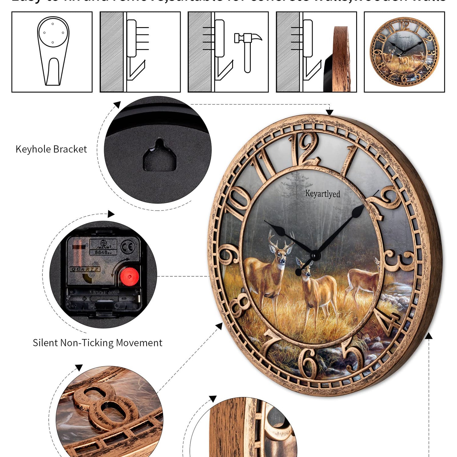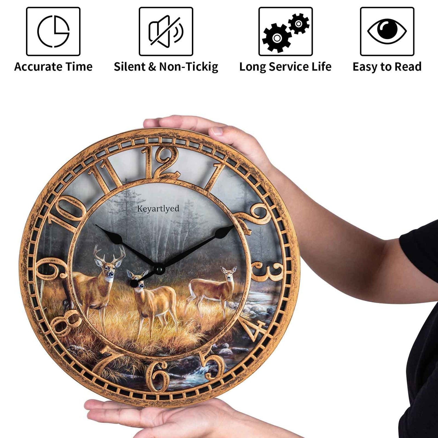 - SMART GIFT IDEA : The non-ticking deer themed clock is a perfect gift for friends who love deer pattern wall art decorations. It can also be given as a holiday gifts.