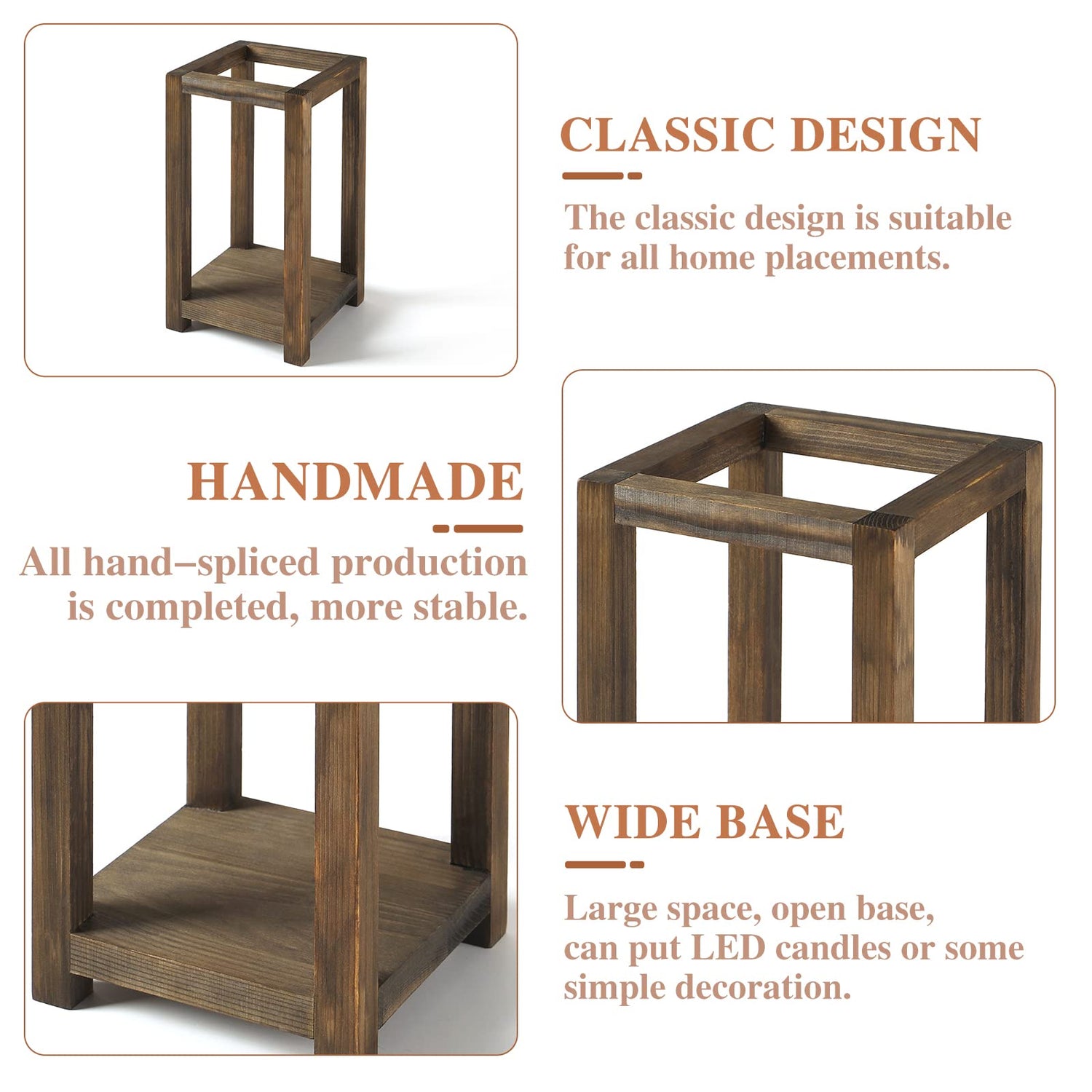 • Great for holiday decorating or all year long, the possibilities are endless! Made to last, these lanterns can be used season after season. Lantern holds up to a 4” diameter pillar candle. Candles not included. Although these lanterns are open top style, they are made of wood so LED candles are highly recommended