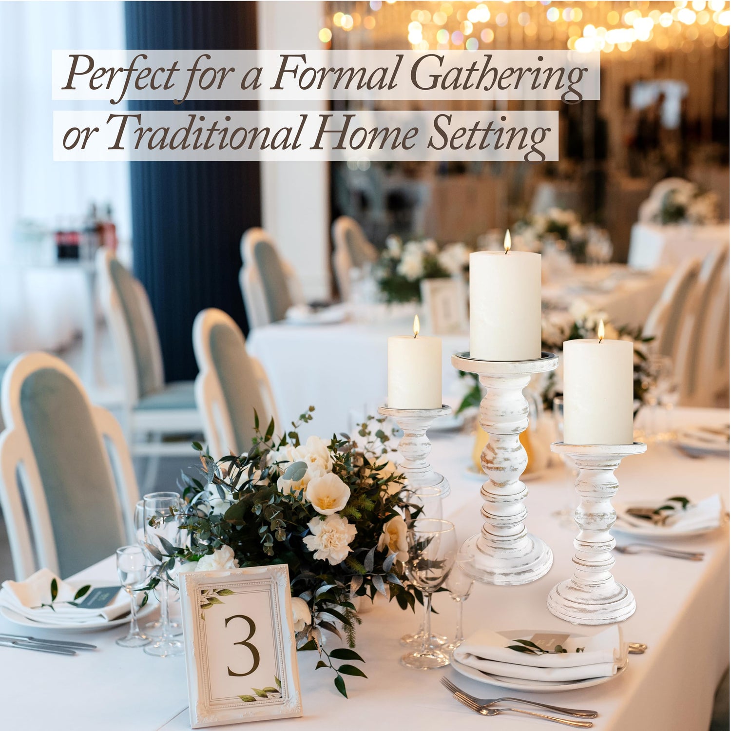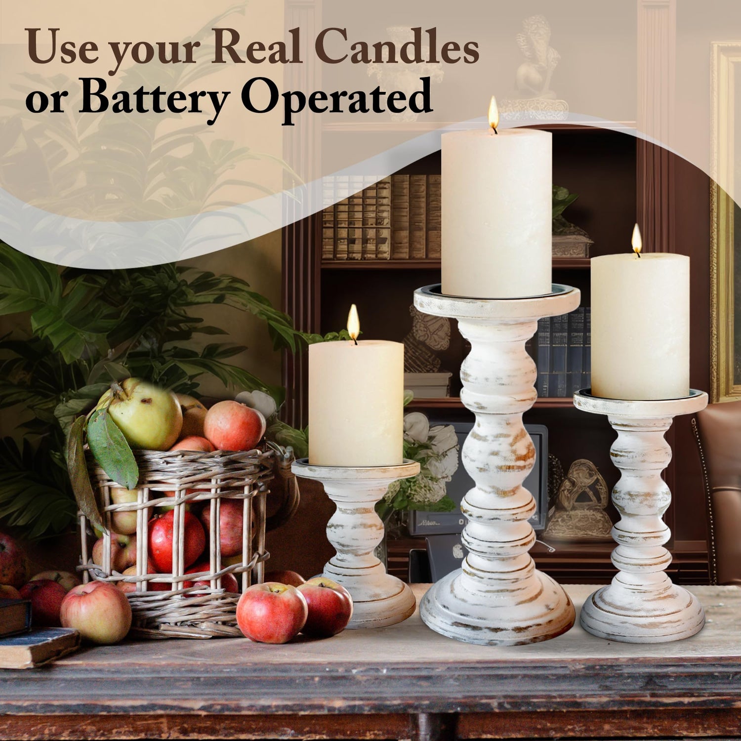 • COZY CHARMING GLOW: Our Modern Farmhouse Decor Pillar Candle Holders can be used for your Fireplace Mantle Decor, Dining Table Centerpiece Decor, Table Decor for Living room. Or anywhere else you need the charming ambiance of real or battery operated pillar candles.