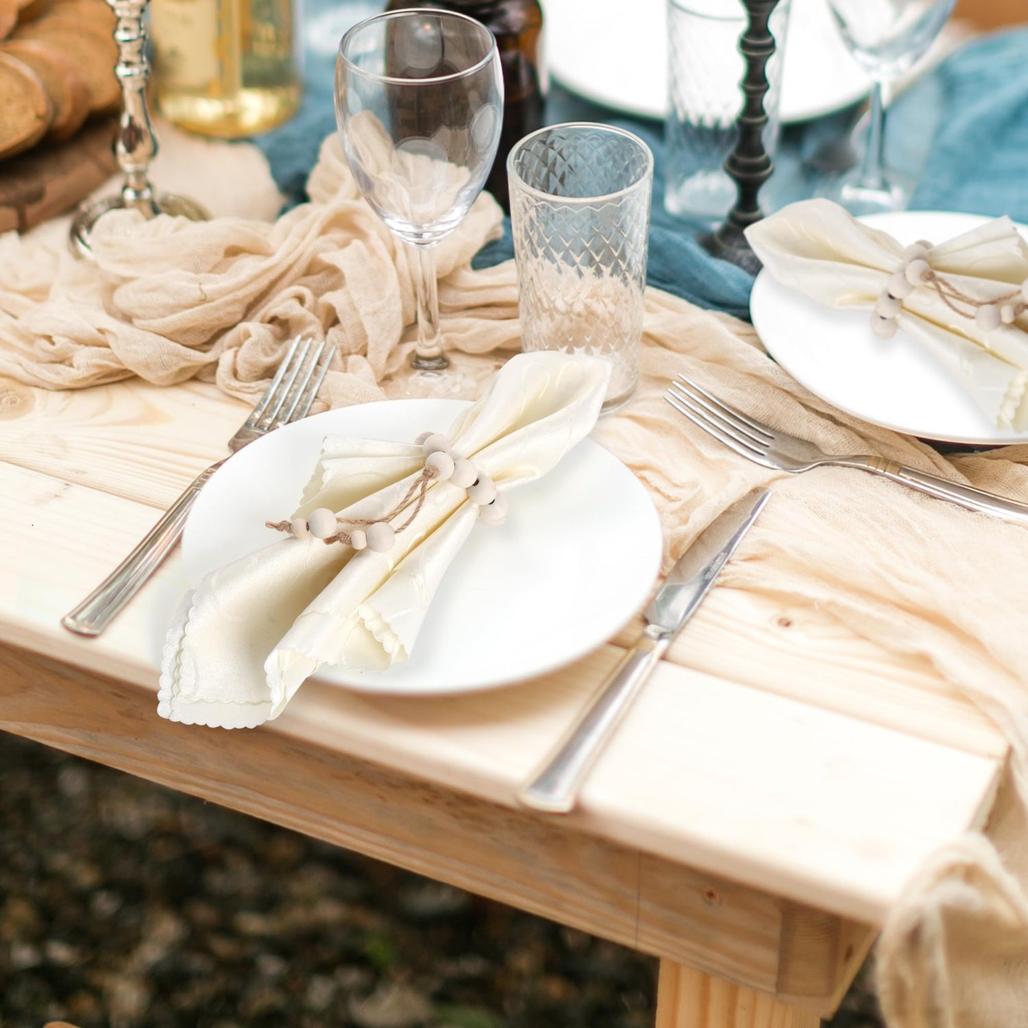 • Material: Farmhouse napkin rings are made of wooden beads and jute rope, durable and long-lasting. The sleek design adds a modern touch to any table setting, making them the perfect addition to your dining experience.