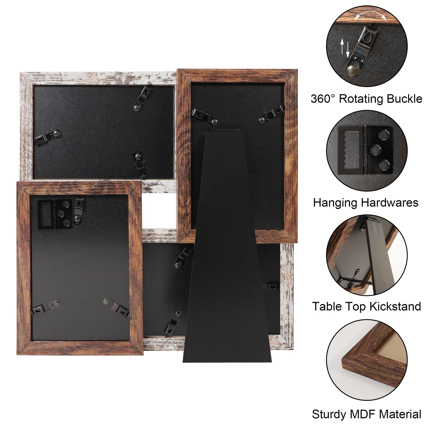 - Unique Design: The photo collage frame is perfect for displaying four 4x6 photos, the opening size is 0.5 inches smaller than the size of the photo to better fix the photo and prevent it from slipping out.