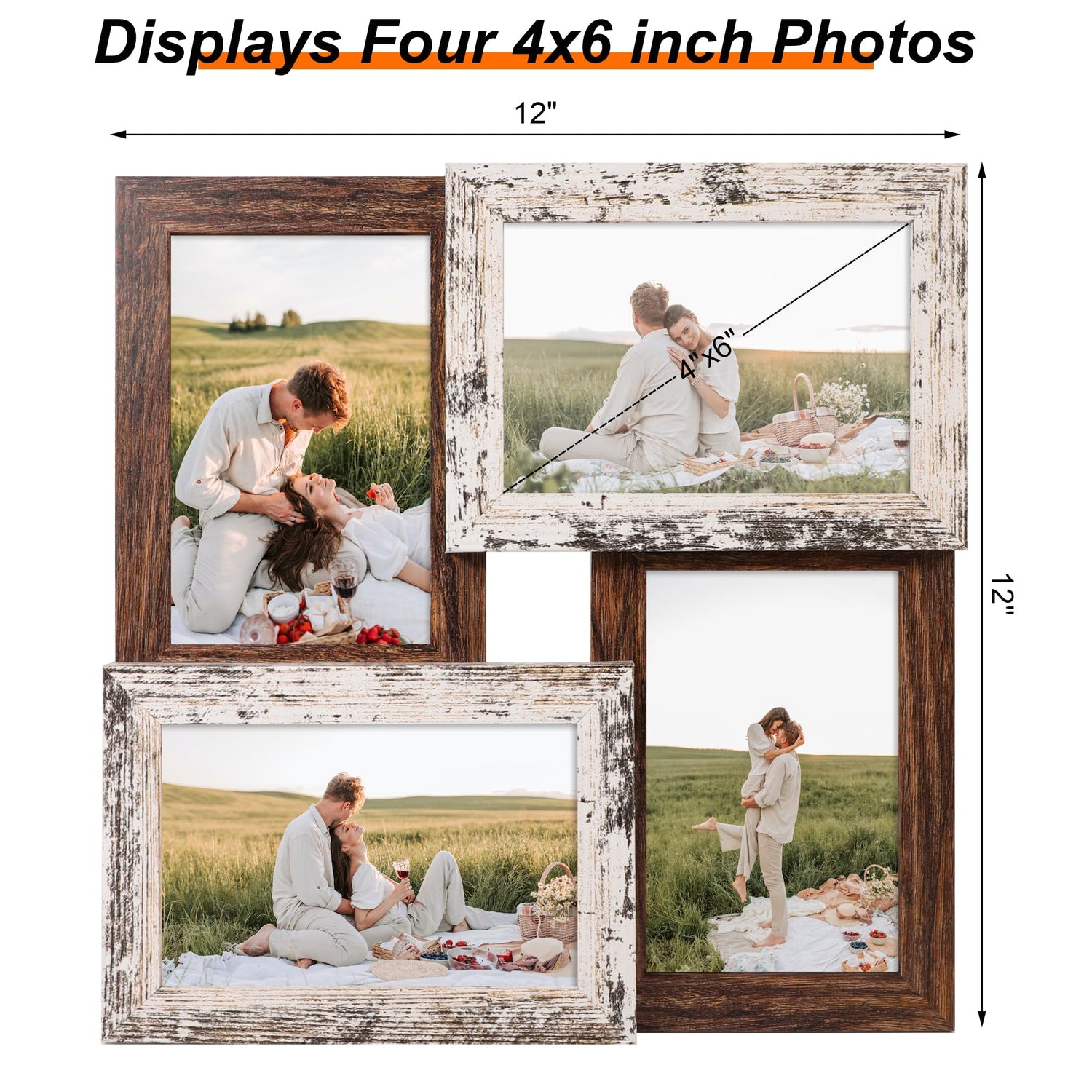 YESKAY 4x6 Collage Picture Frames, Multi Family Photo Frame with Real Glass, Displays Four 4x6 Photo, Wall Decor Wall Hanging or Tabletop, Distressed White+Rustic Brown
