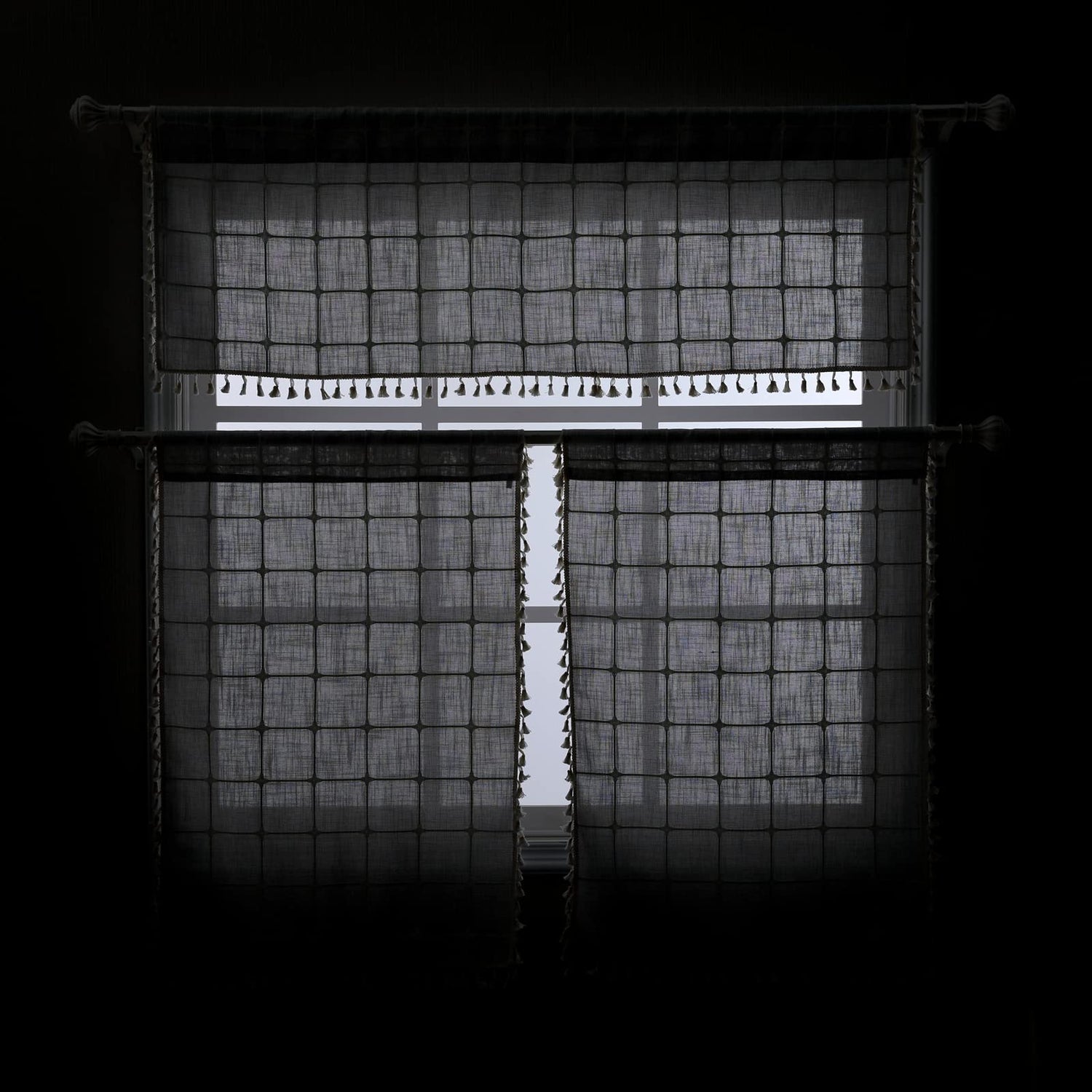 * Versatile Use: Made a perfect modern farmhouse kitchen valance, boho short curtains for living room, tasseled valance for bathroom window,
