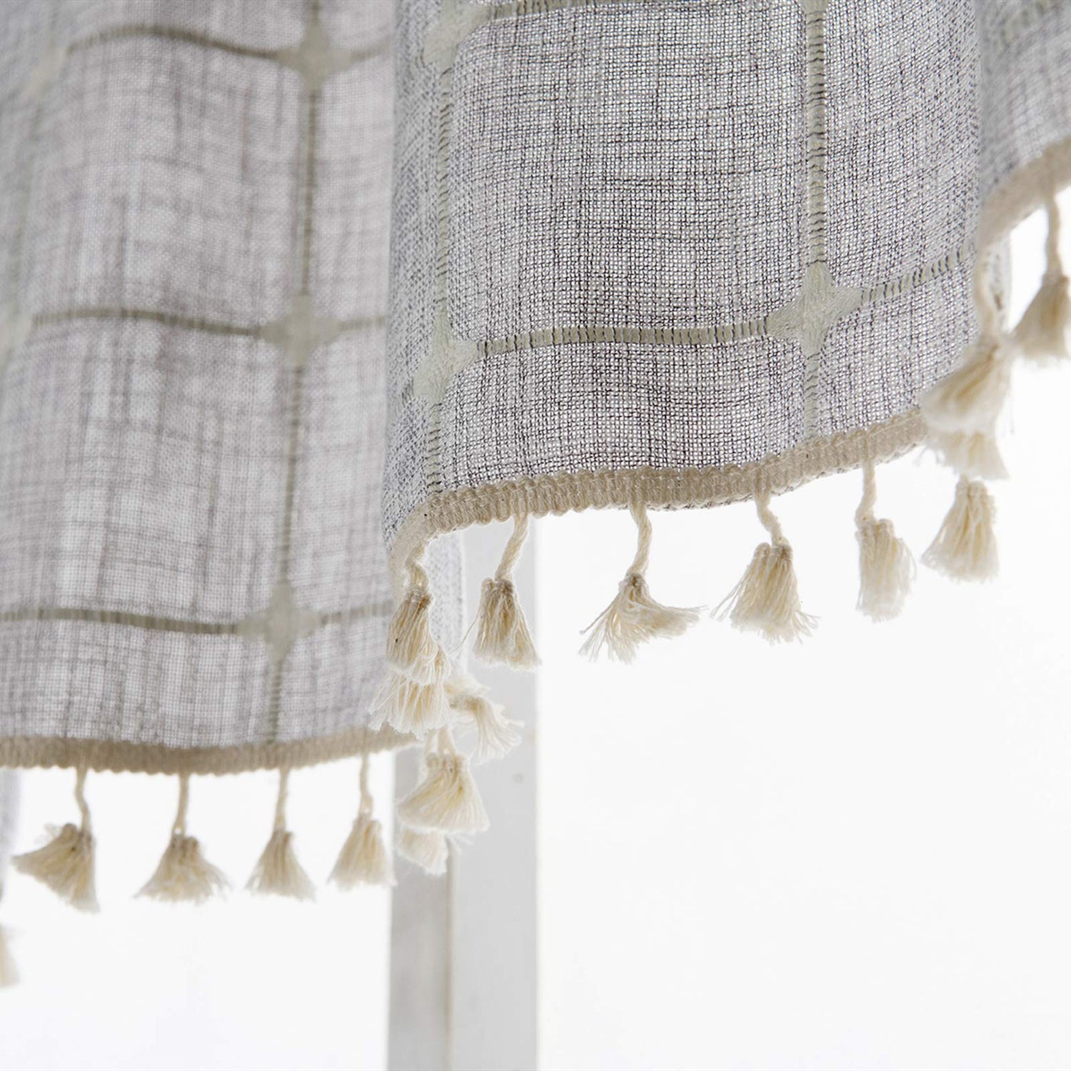 Details: Make your room from drab to fabulous with this bohemian valances curtain. Features vintage chic tassel fringe along the side, gray