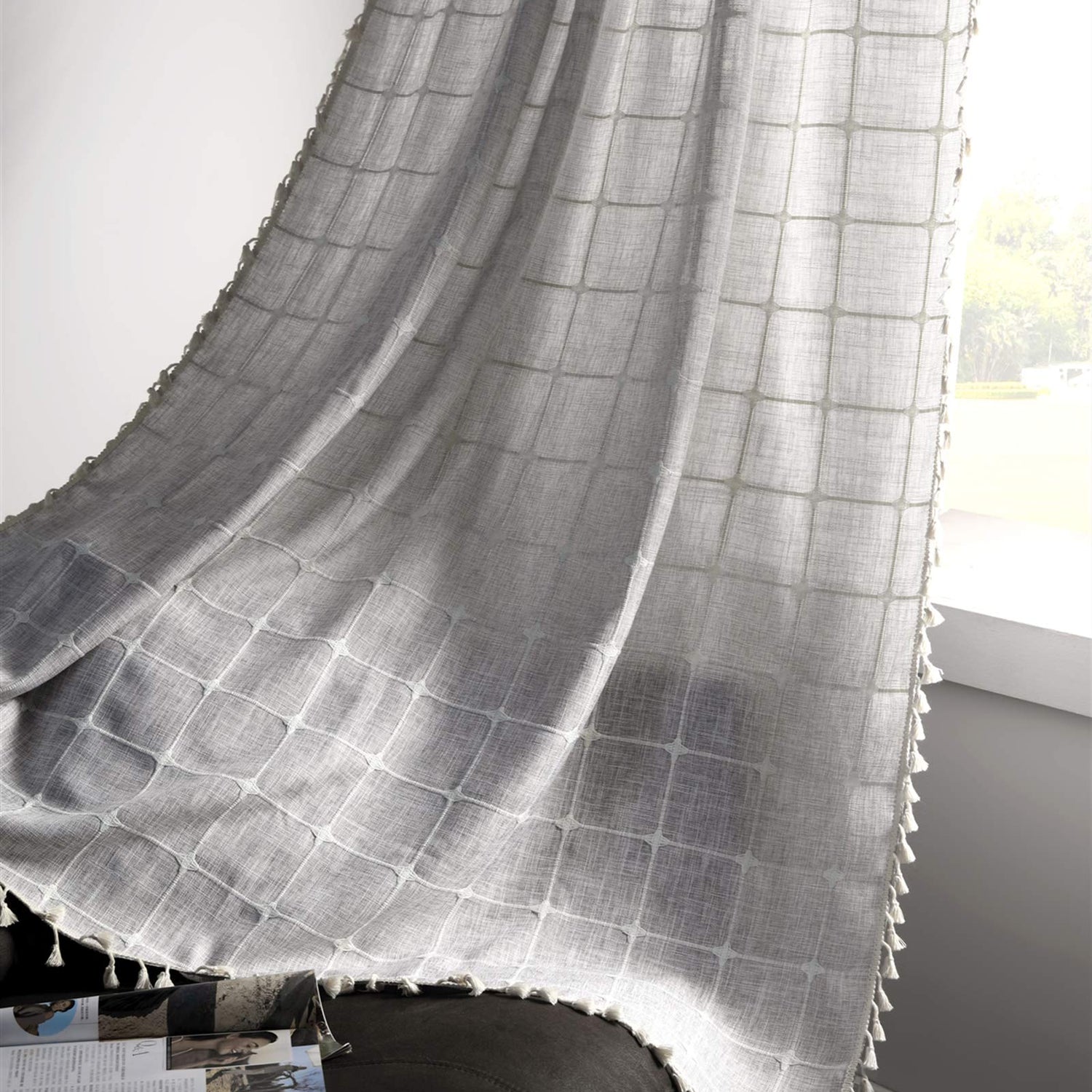 - -- Cotton Linen Curtains -- This tassel curtain valances was crafted from cotton linen, soft and skin-friendly, formaldehyde vinyl free. Subtle stitching at the boarder make sure its long-lasting use.
