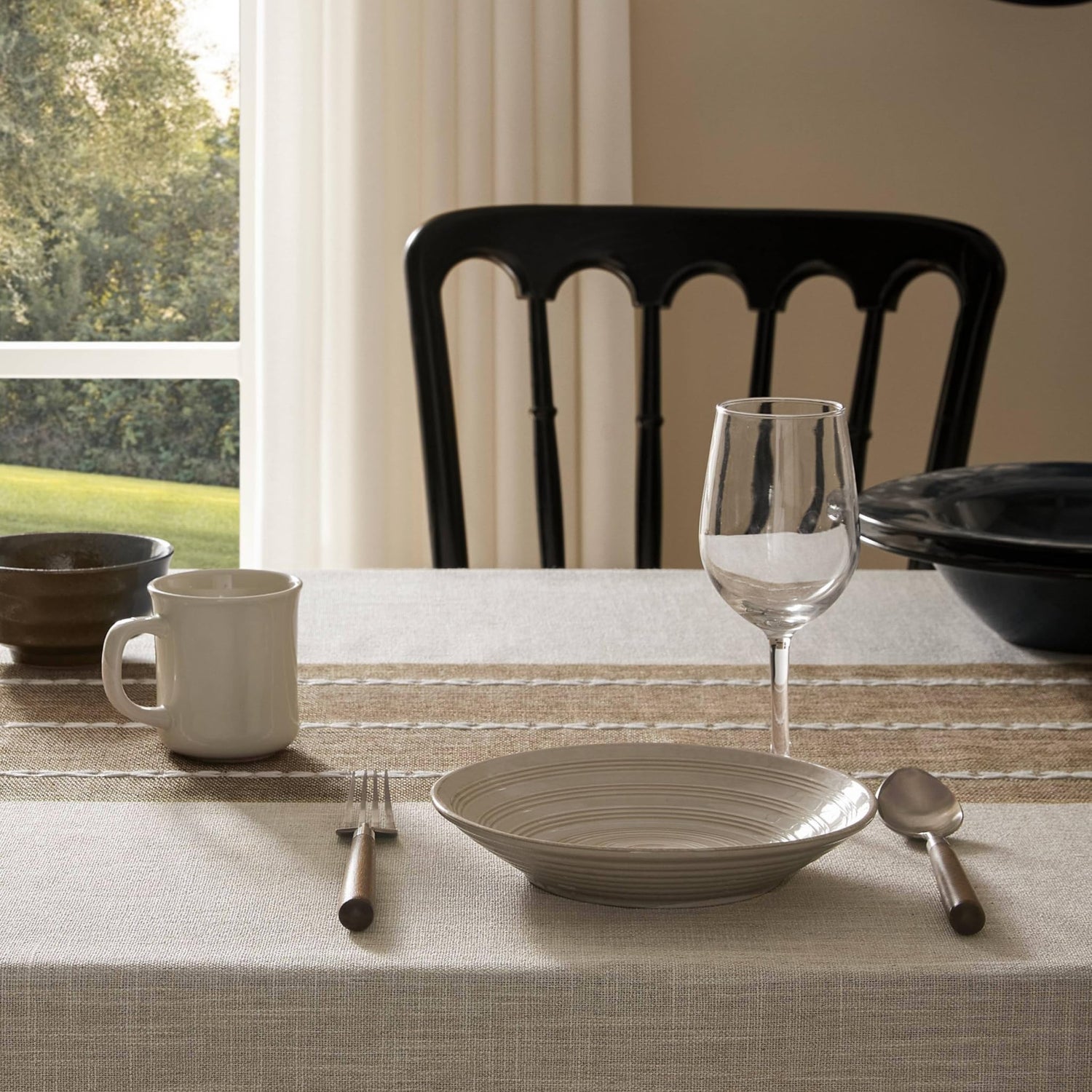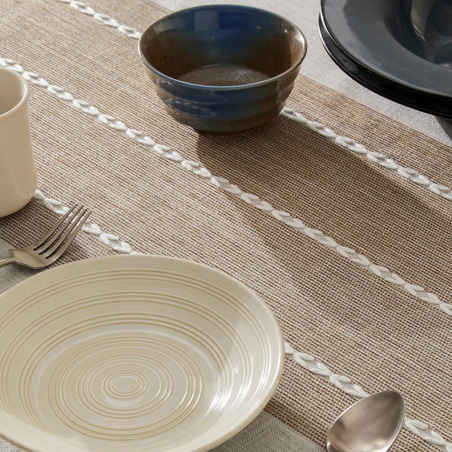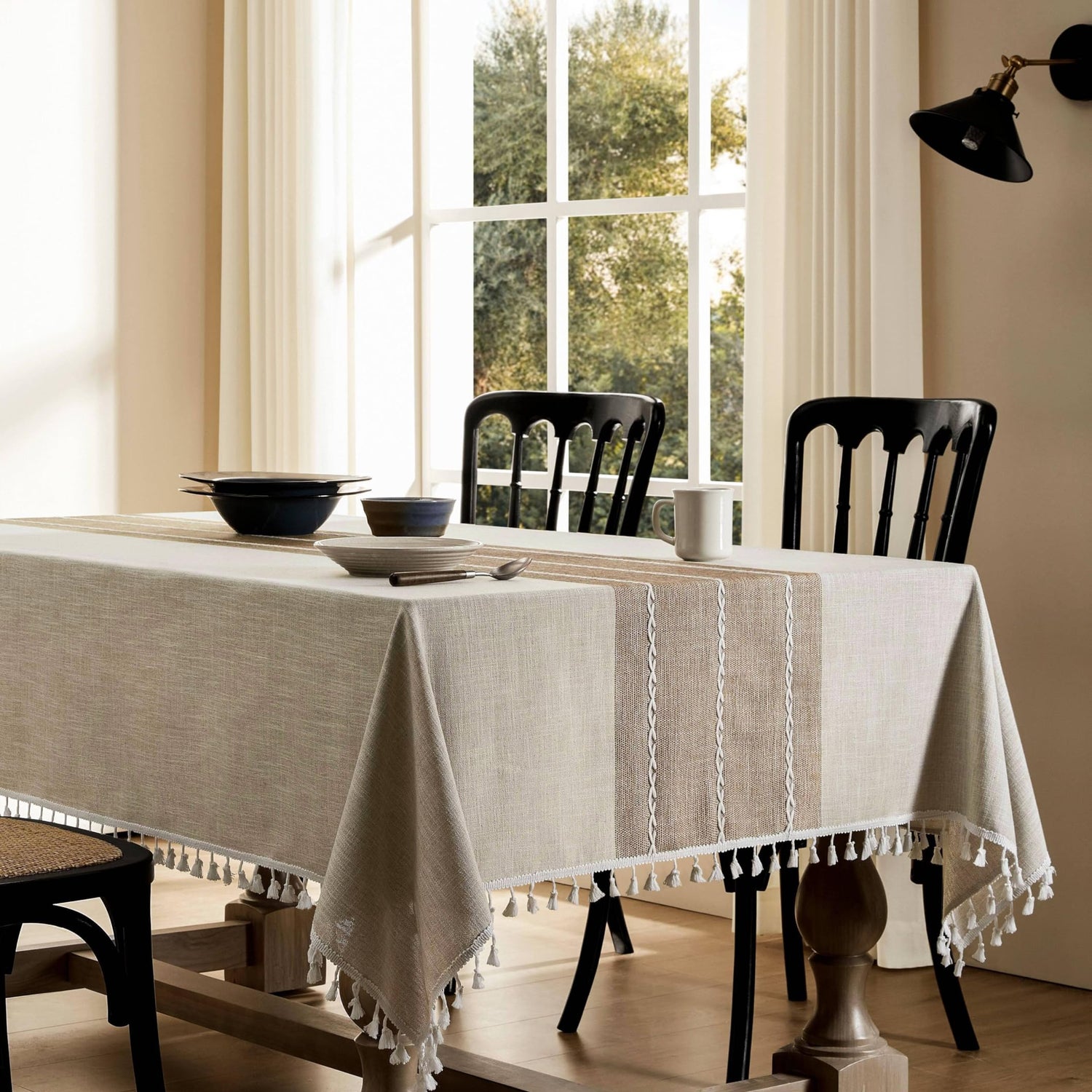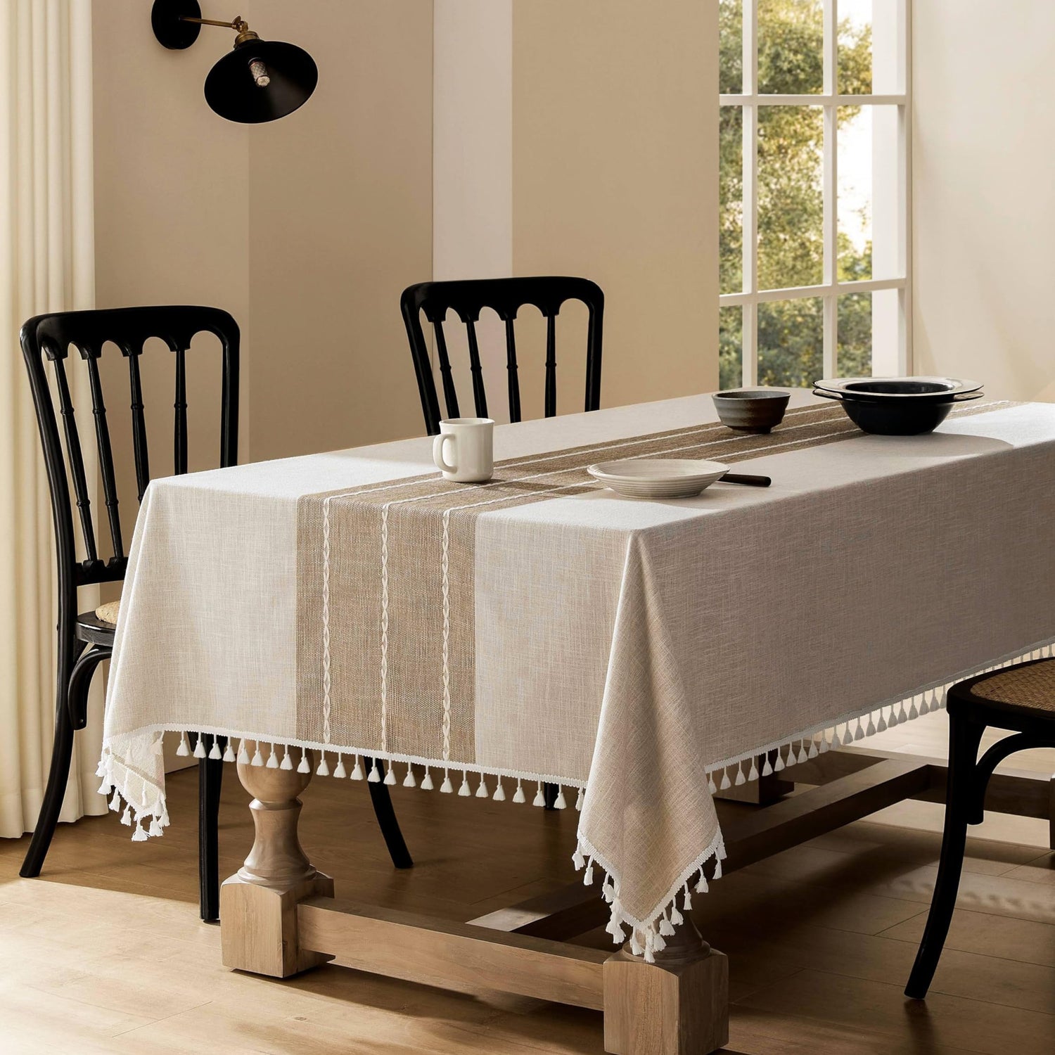 - This tablecloth features a unique combination of bohemian and farmhouse style, with chic embroidered stripes and natural cotton linen appearance, adds a touch of luxury to your home and creates a beautiful aesthetic.