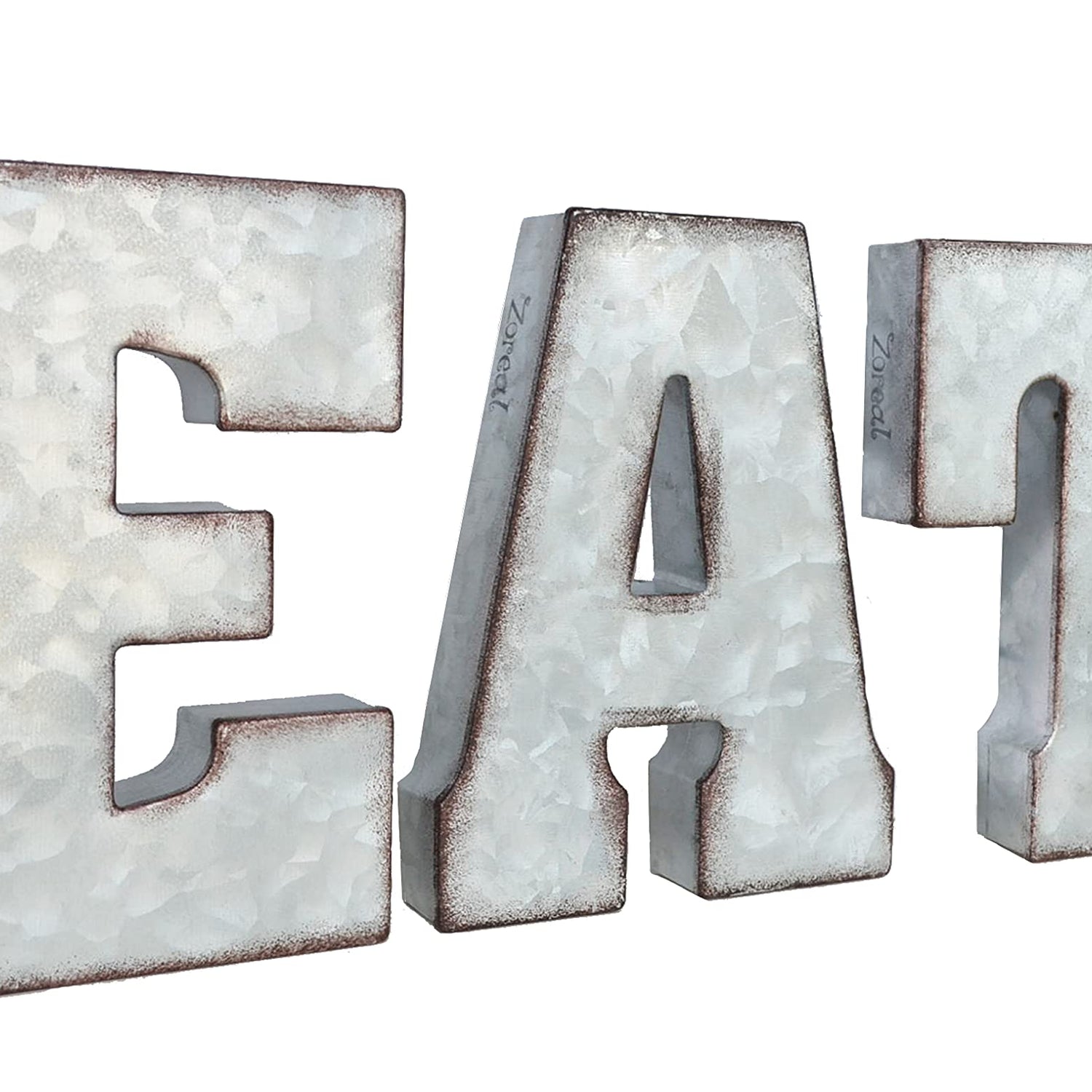 Zoreal Galvanized EAT Sign Rustic Metal Letters Free Standing Decorative Sign Wall Decor