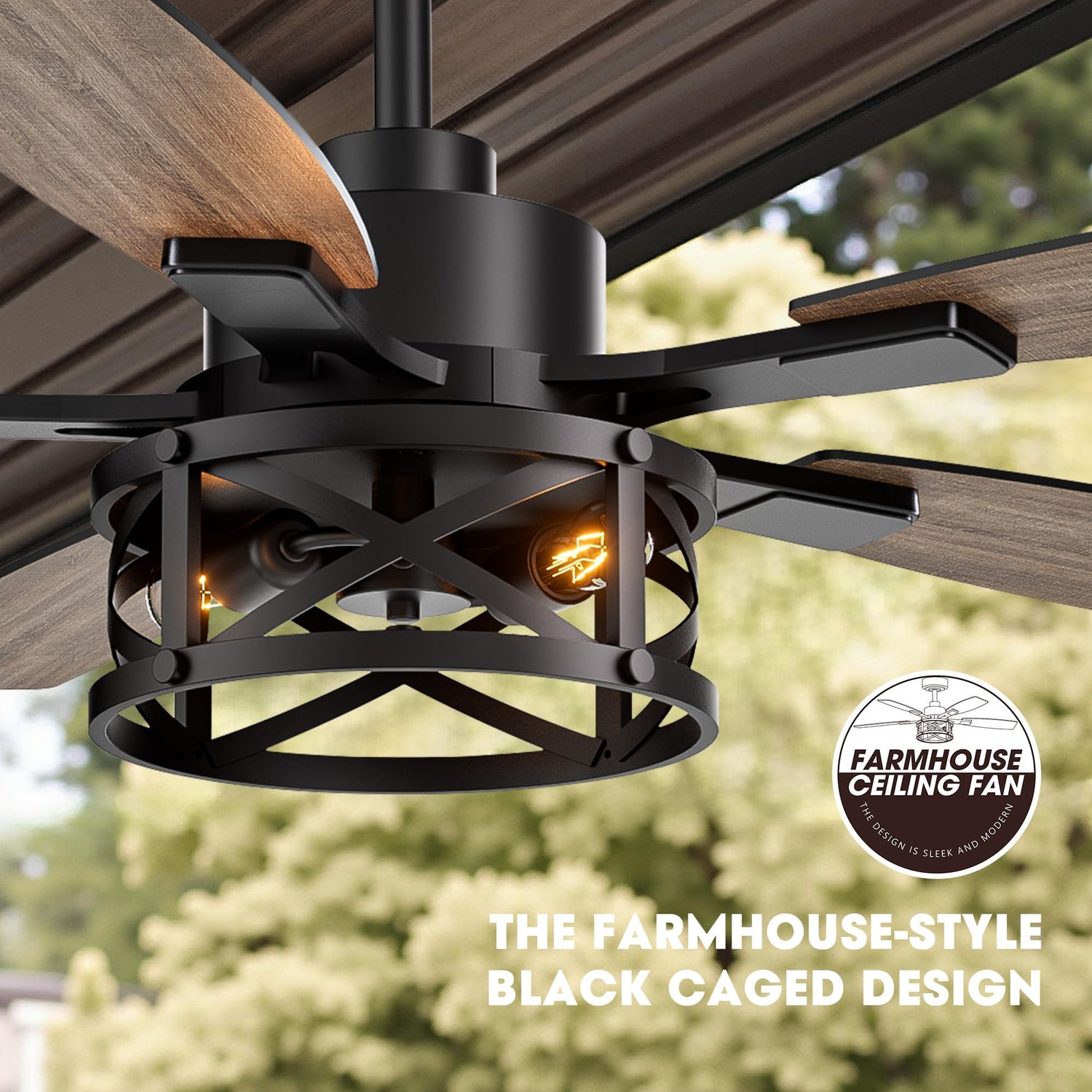 • MODERN DESIGN: Industrial-style ceiling fan featuring a black metal finish, geometric cage light fixture, and 5 weathered gray blades for contemporary appeal