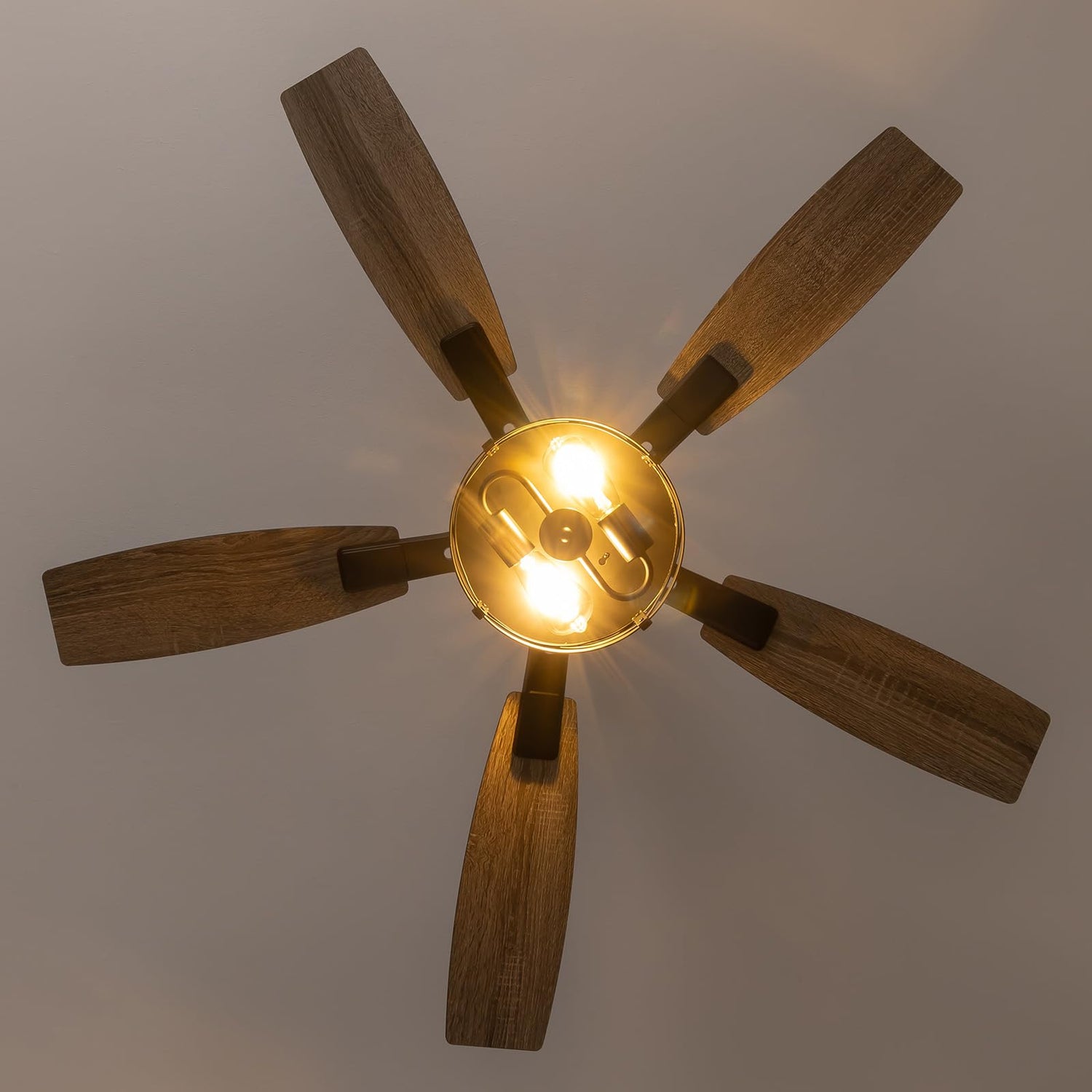 - LIGHTING FIXTURE: Built-in drum-style light kit with metal cage design provides ambient illumination while adding visual interest to the fan's appearance