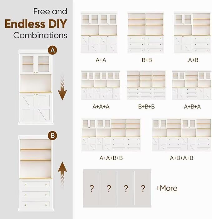 - 【Modular & Customizable Design】Designed with flexibility in mind, this tall buffet cabinet can be used alone or combined with additional units to create your perfect storage setup—whether it’s a full pantry wall, an expanded coffee bar, or a multi-level microwave station. Assembly is quick and hassle-free thanks to clear, step-by-step instructions.