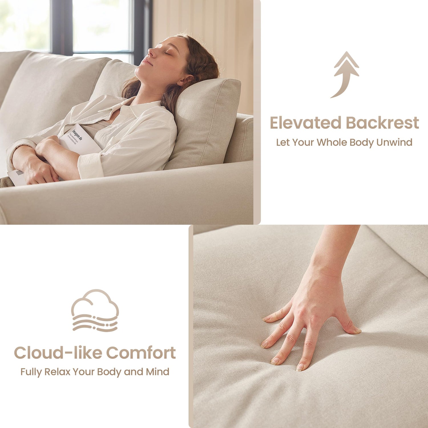 • 【Comfort & All-Day Support】Sink into 22.8" deep seats with medium-firm high-density foam cushions and 3 ergonomic back pillows. The 9.5" roll arm design and contoured lumbar support eliminate fatigue during movie nights or remote work. Unlike sagging sofas, our couches for living room retain shape even after years of use.