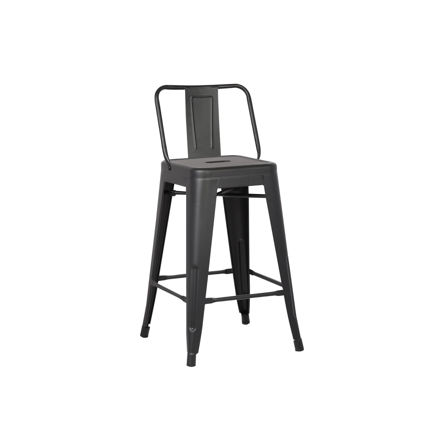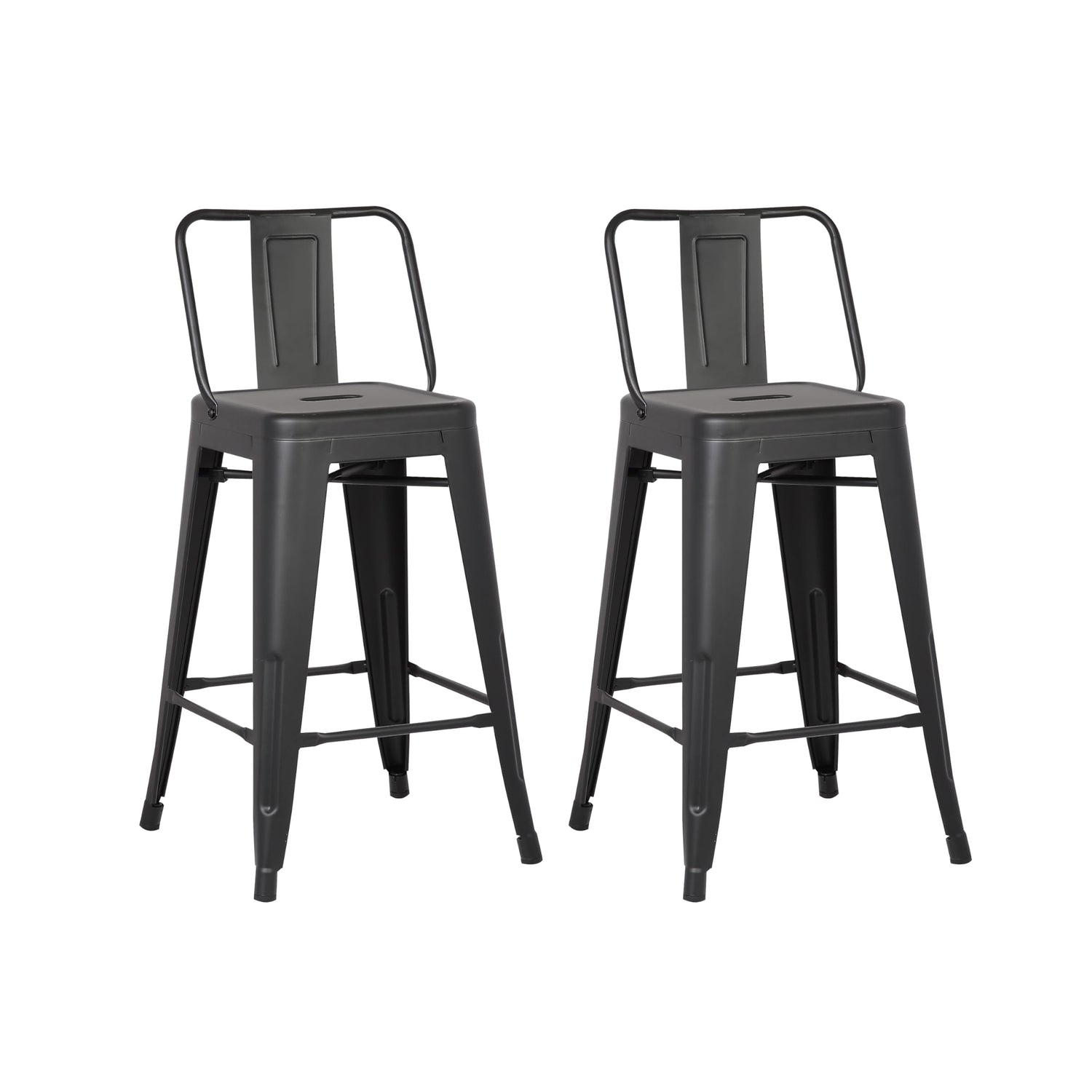 AC Pacific 24” Metal Barstool Set of 2 – Country Rustic Style with Low Back, Lightweight & Sturdy Build, Easy Assembly – Matte Black