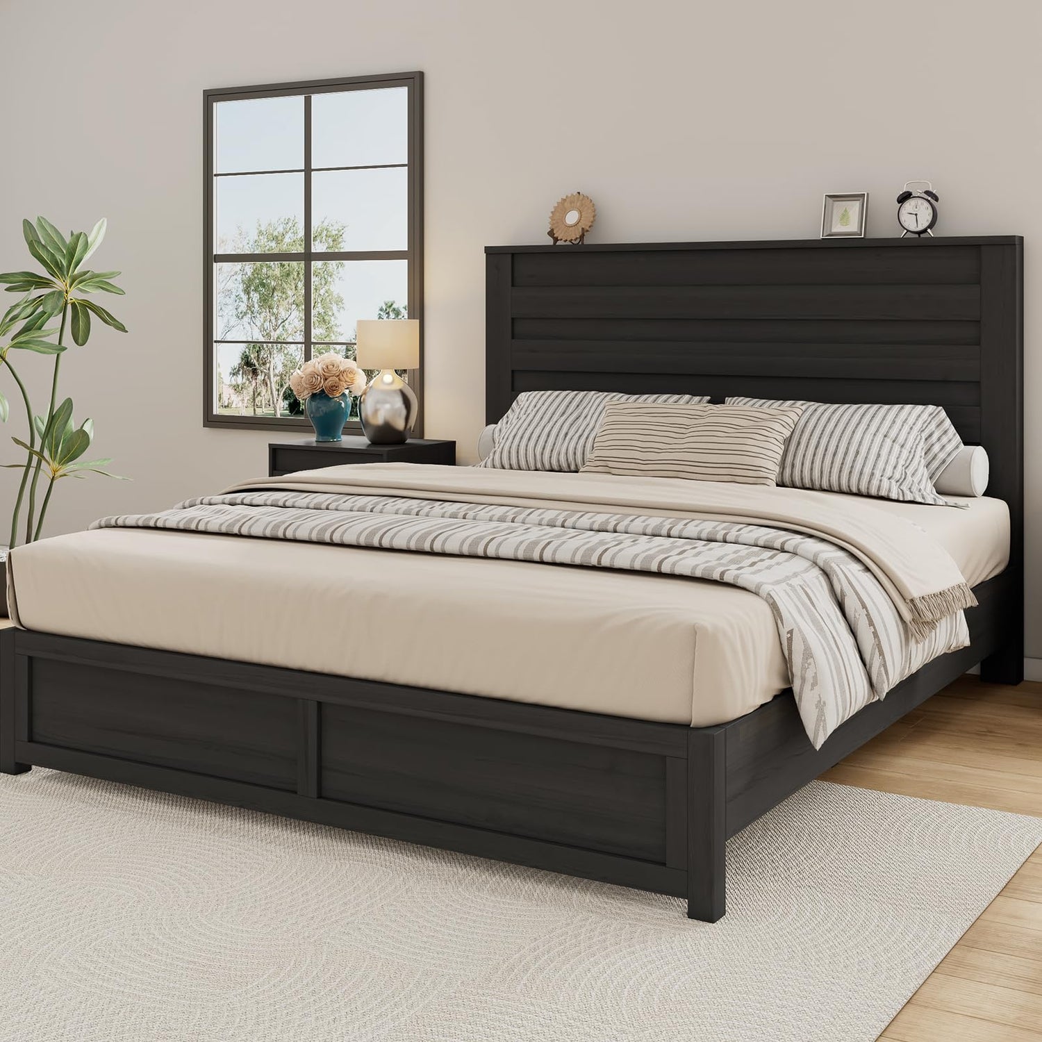 Albott Queen Size Farmhouse Bed Frame with 49" Headboard, Platform Bed Frame with Wood Slats Support/No Box Spring Needed/Easy Assembly, Black