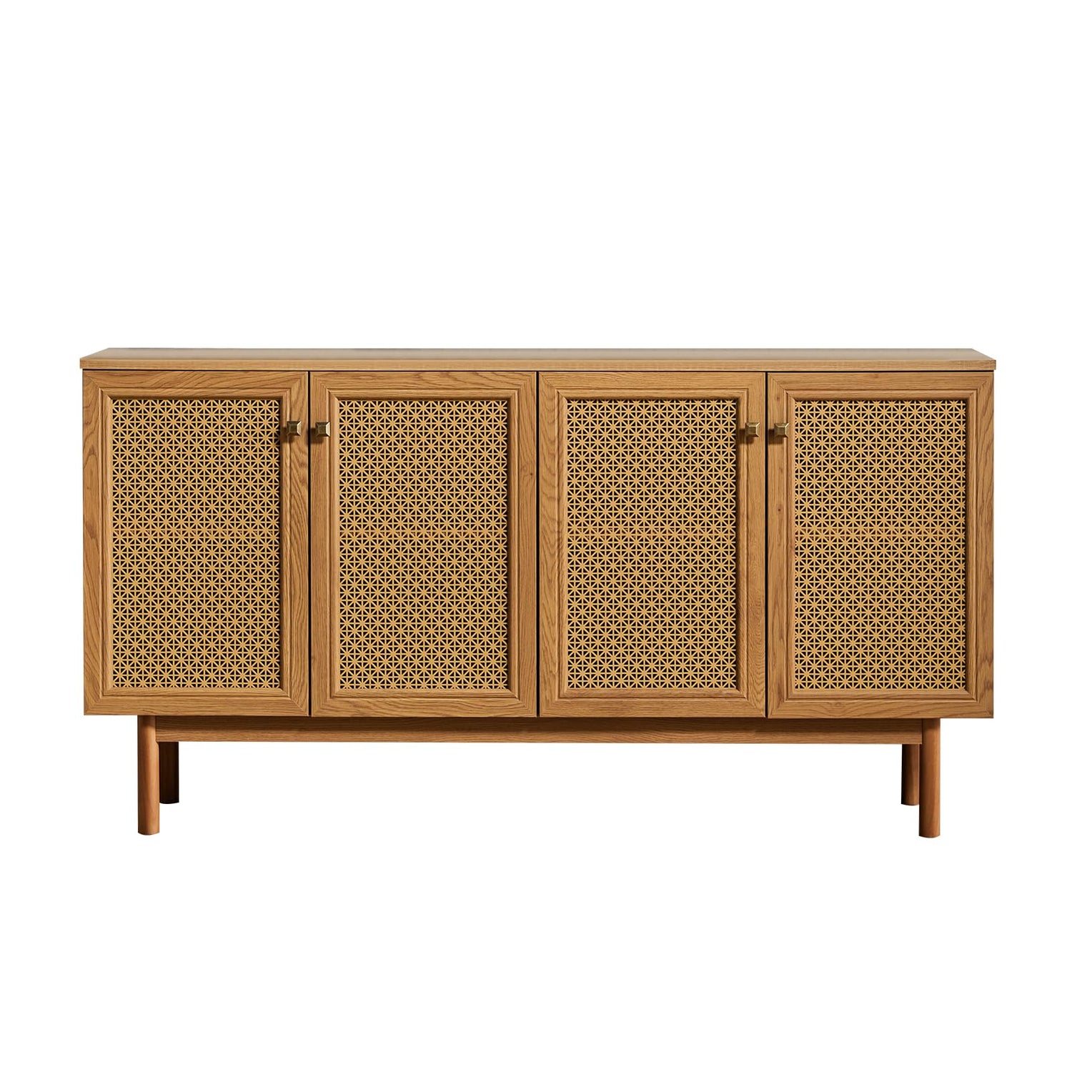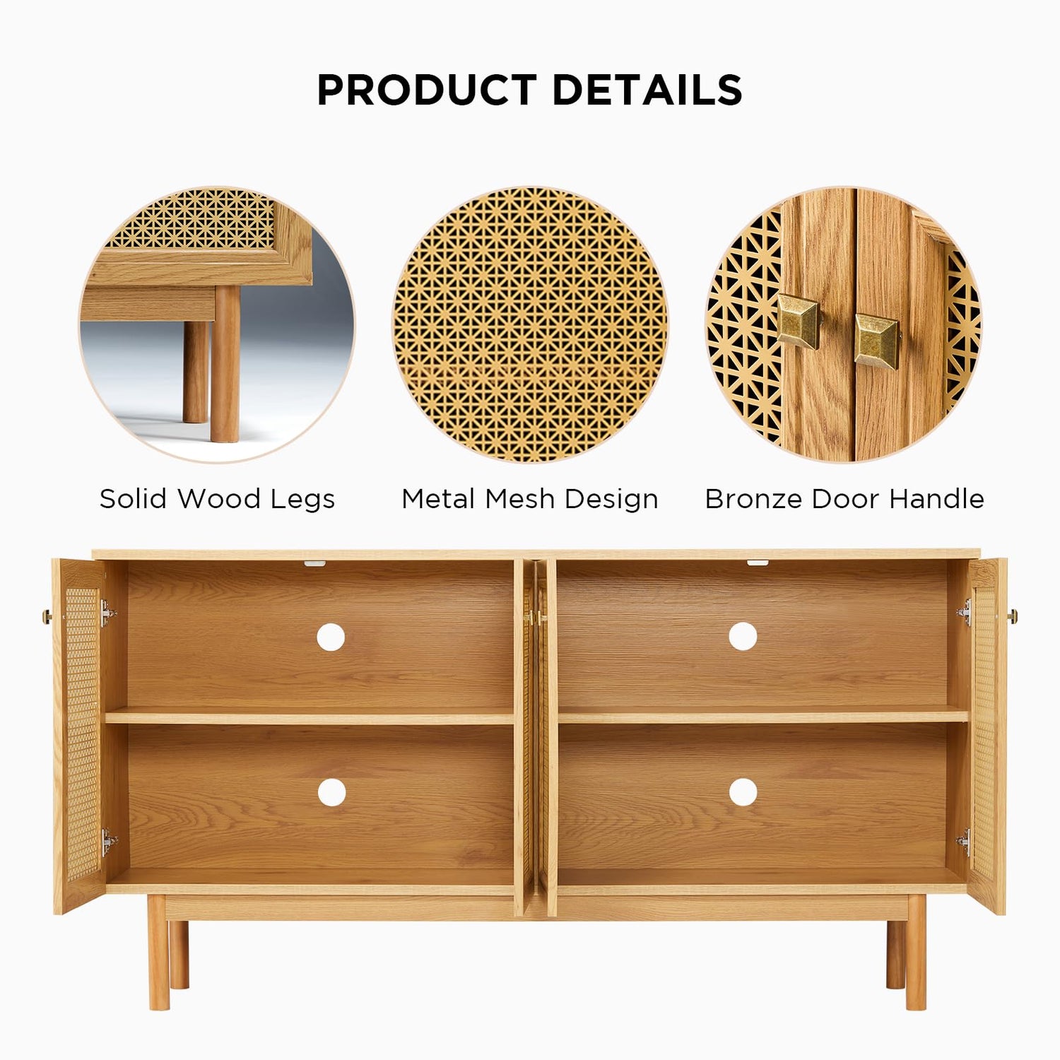 AMERLIFE 63" Sideboard Buffets Cabinet, 2-Adjustable Shelves Sideboard with 4 Doors, Large Accent Storage Credenzas for Living Room, Dining Room, Bedroom, Natural