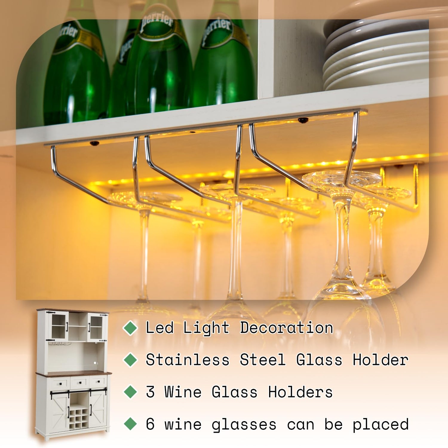 5. Versatile Placement: Whether it's in your dining room, kitchen, or cellar, this bar cabinet is designed to seamlessly fit into any space.