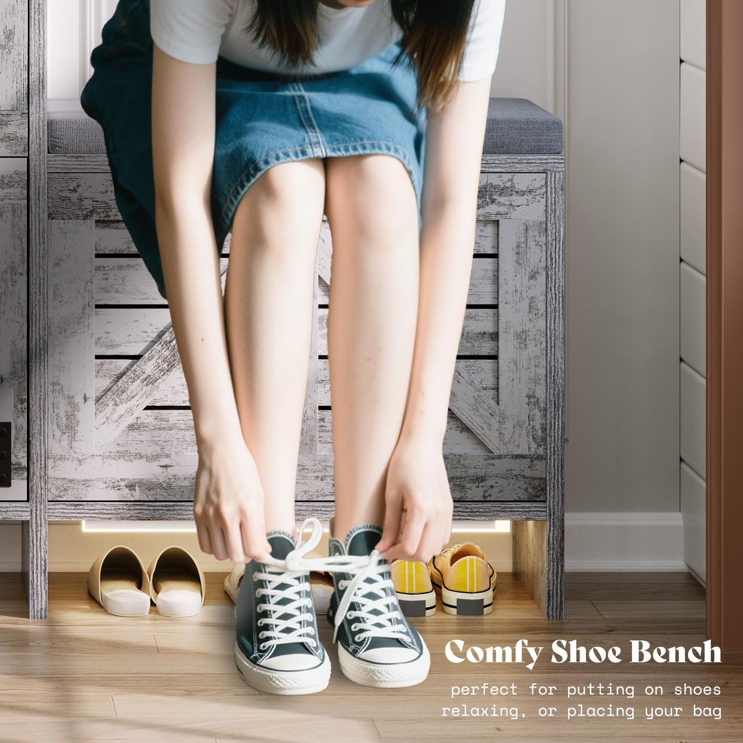 • 【3-in-1 Design for Functional Entryway】Combining a soft cushioned bench, hidden shoe storage, and smart lighting, this shoe bench transforms chaotic entrances into cozy, organized welcoming zones.