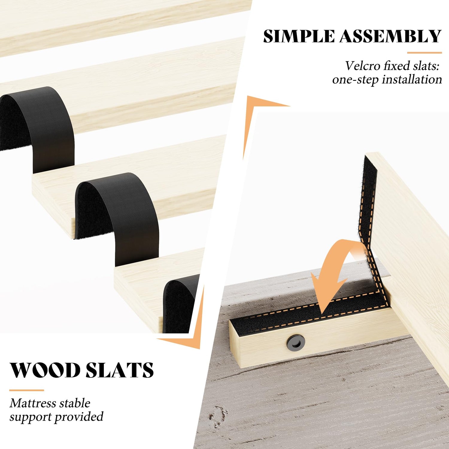 • 【Multiful Use】Ample under-bed storage space, for storing items or robot vacuum cleaner. 49" tall headboard accommodate mattresses from 10" to 16", adjustable as needed.